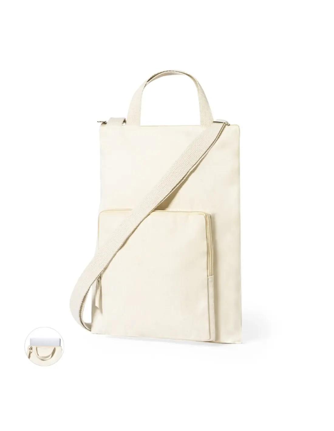Original funda para ordenador portátil, fabricada en resistente canvas de acabado natural. Compartimento principal con cierre de cremallera a juego y asa de transporte. Con cinta bandolera ajustable a juego y bolsillo exterior con cierre de cremallera. Para ordenador portátil o tablet de hasta 15 pulgadas. El canvas es un tejido muy versátil y duradero, compuesto en su mayor medida de algodón. Contribuye al cuidado del medio ambiente, ya que gracias a su resistencia ofrece una gran capacidad de reutilización.