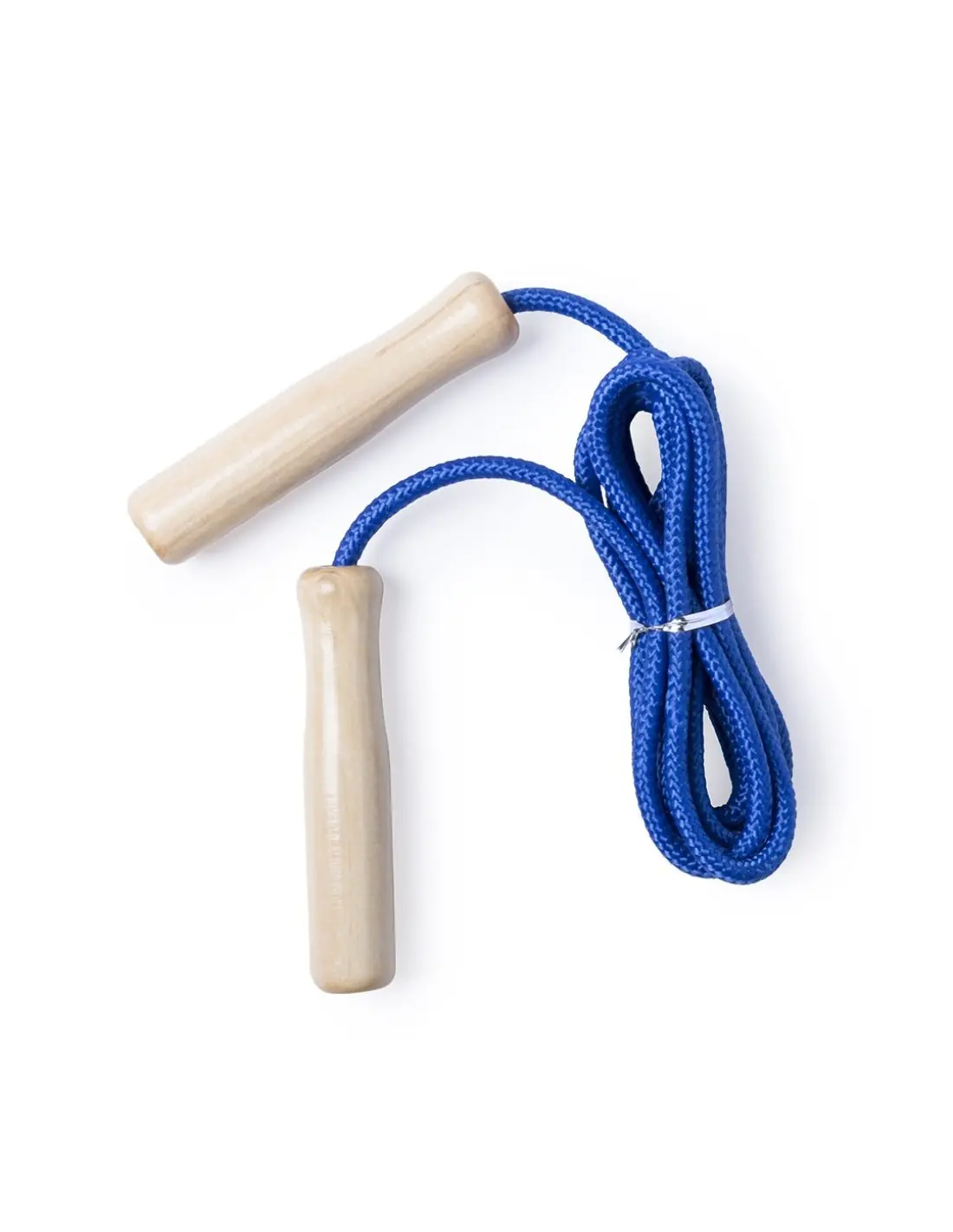 Divertida comba con cuerda extra larga de 240cm de largo en vivos colores. Mangos de sujeción en resistente madera barnizada. Presentación plegada.