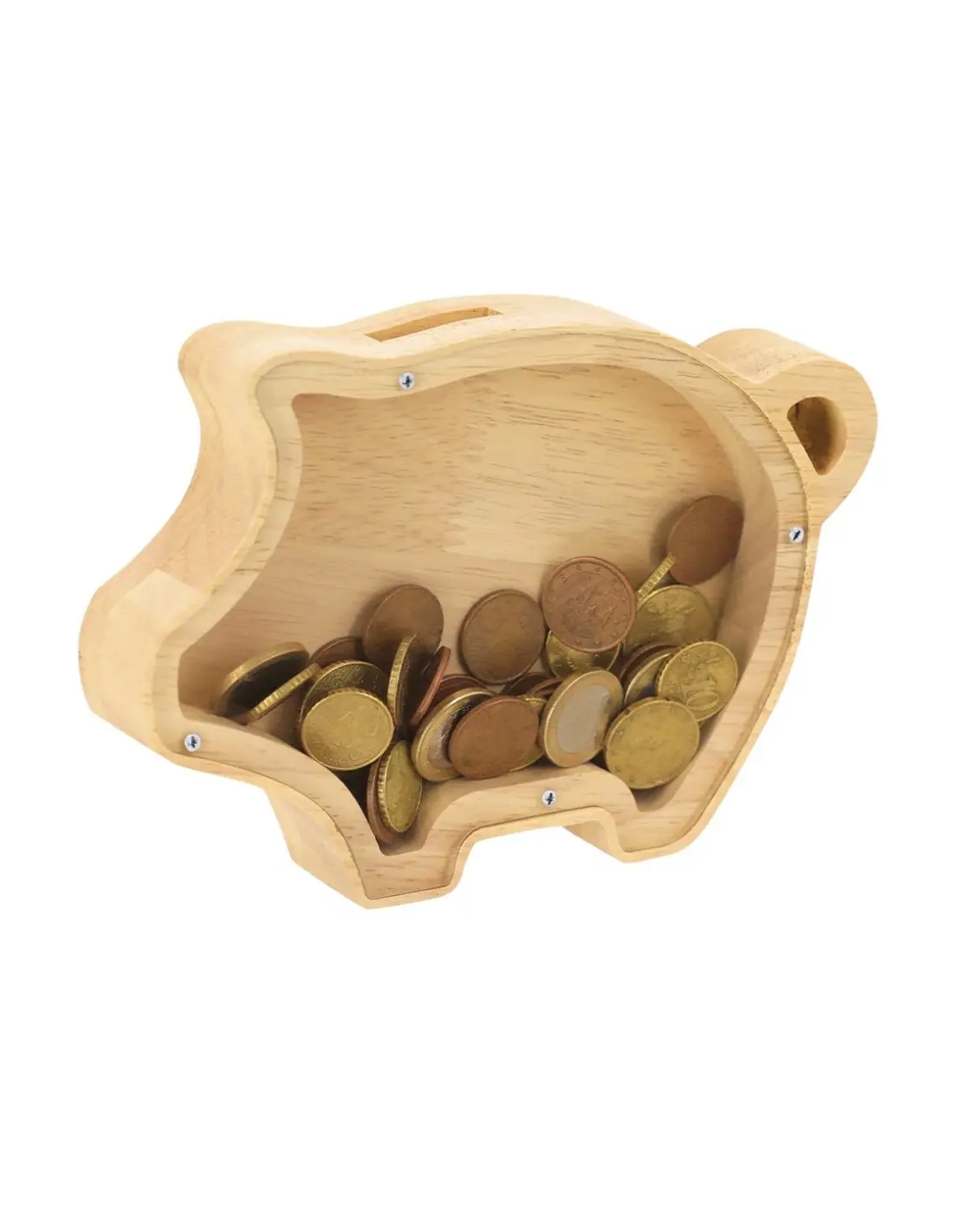 Encantadora hucha con la silueta de un cerdito combinando diseño y funcionalidad, para hacer del ahorro una experiencia alegre, viendo por su ventana...