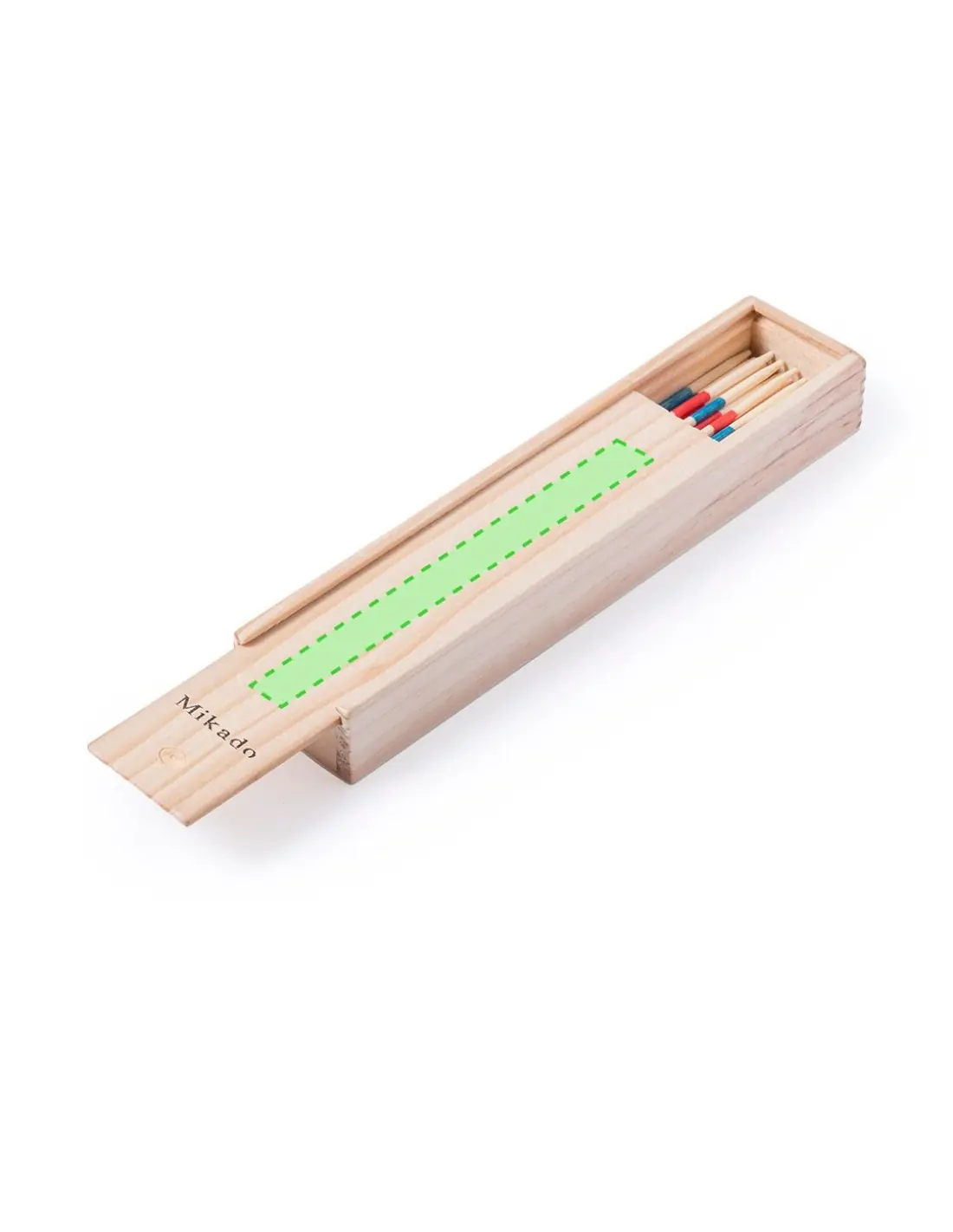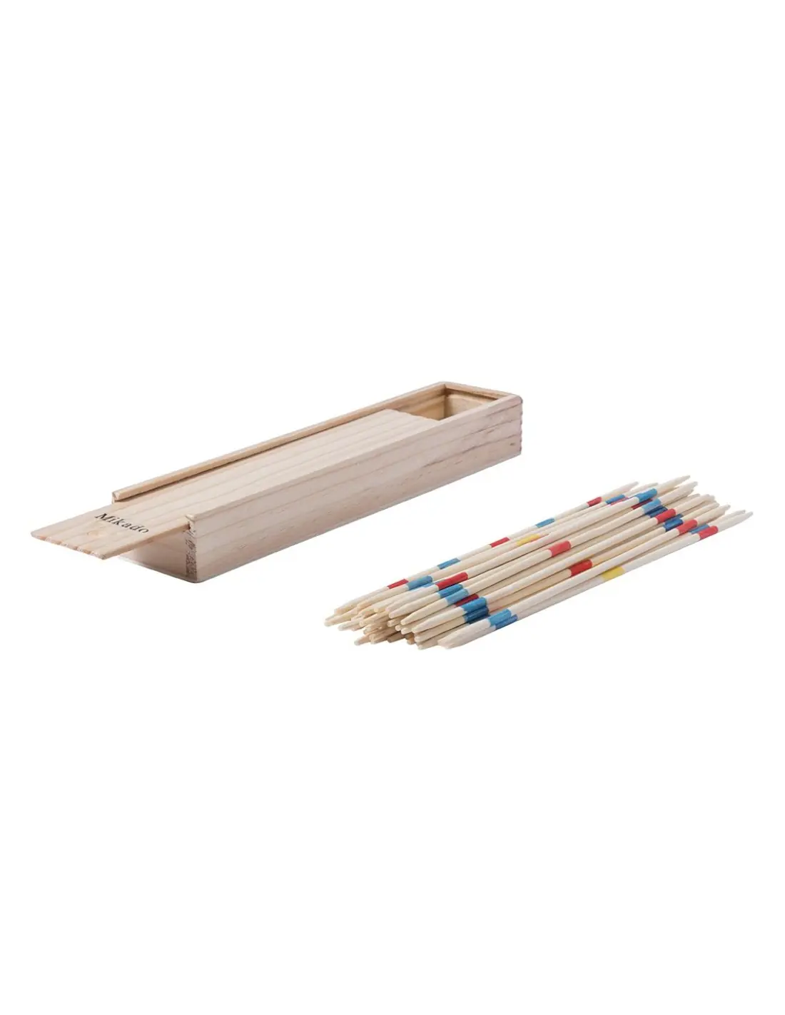 Clásico juego de habilidad mikado con 41 palitos de madera. Presentado en caja de madera con tapadera deslizante.