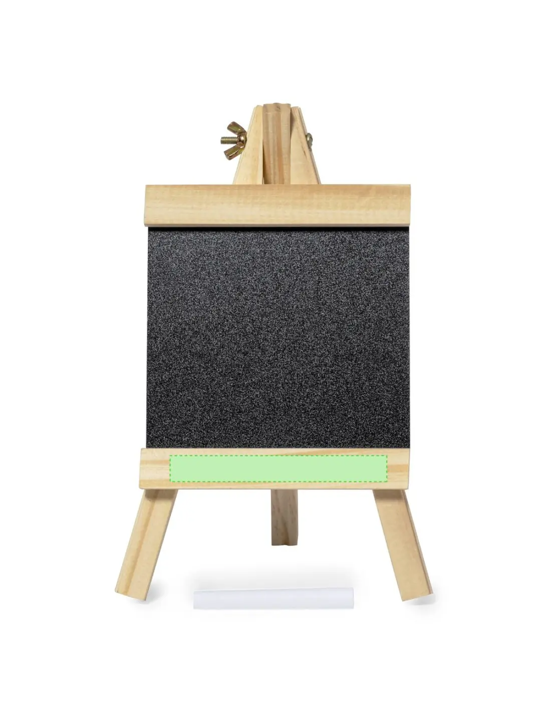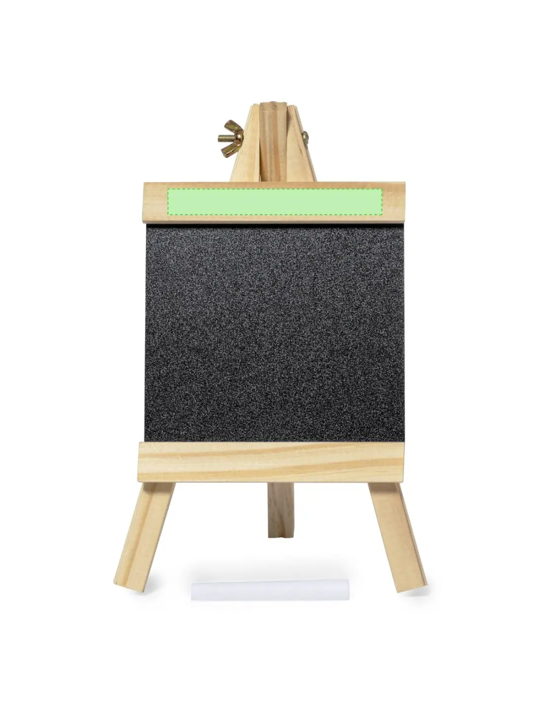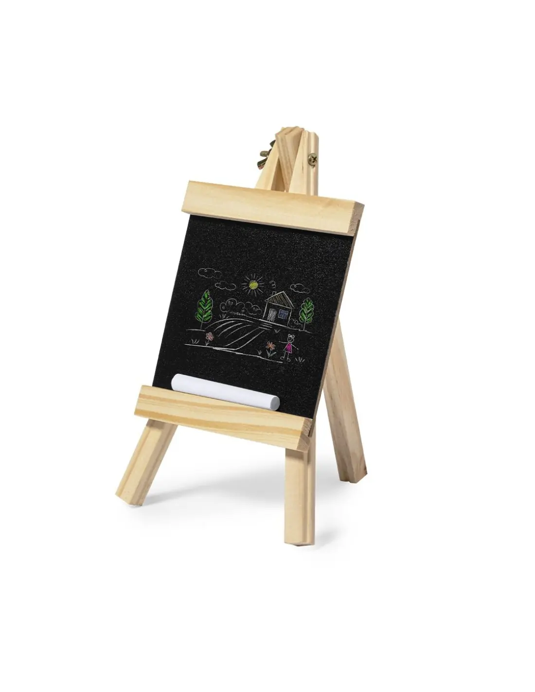Original atril con pizarra hecha en madera, con tiza incluida. Presentado individualmente en caja de diseño kraft.