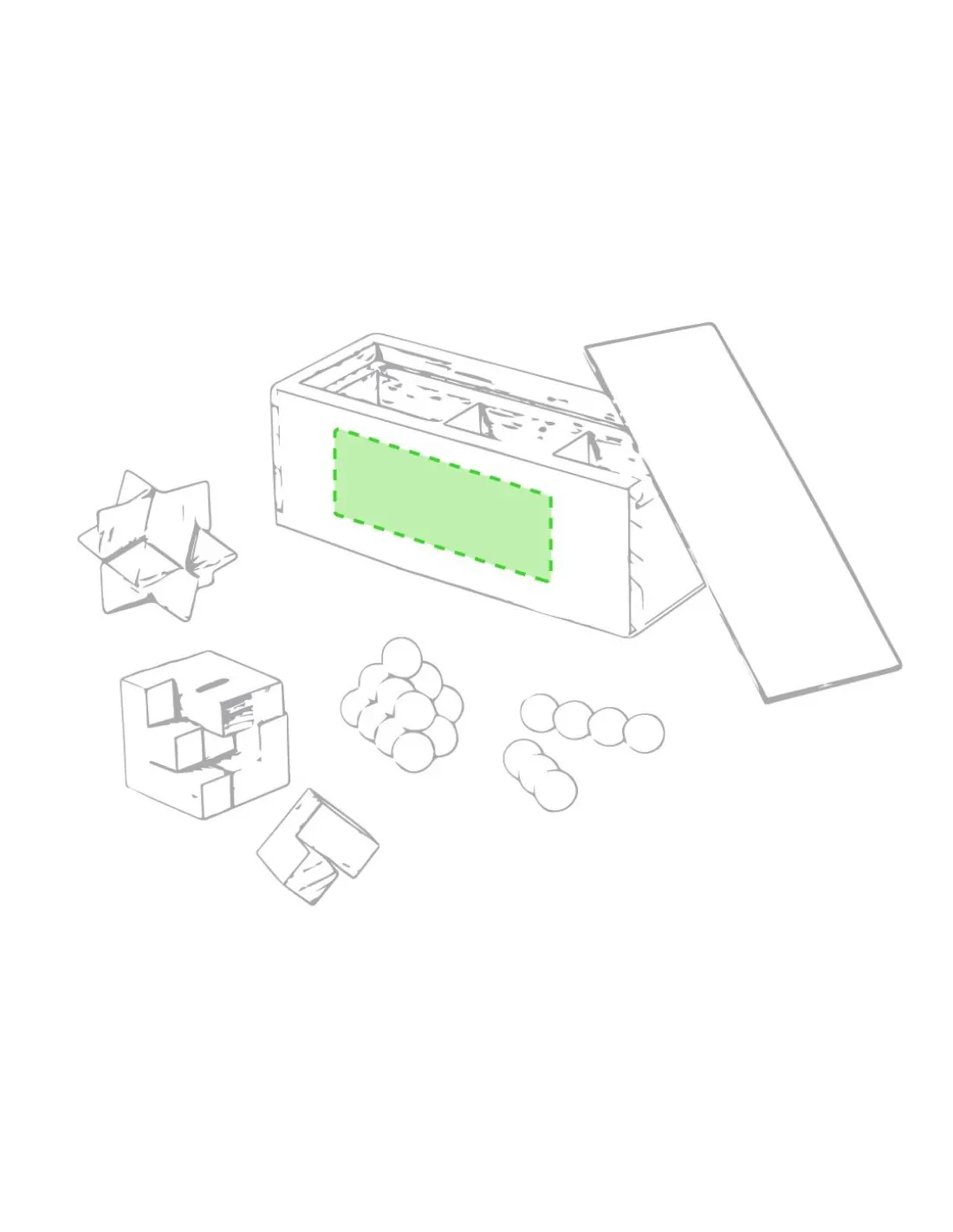 Adictivo set de 3 juegos de habilidad en madera natural. Presentado en caja de madera con compartimentos interiores y tapa deslizante.