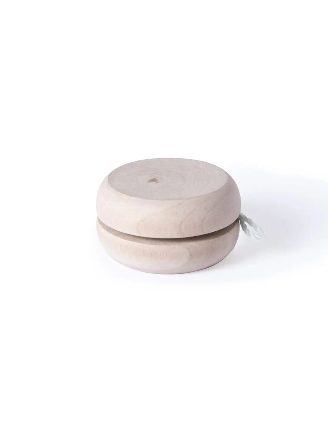 Yoyó en madera de pino pulida. Con hilo rizado de algodón en color blanco de 100 cm.
