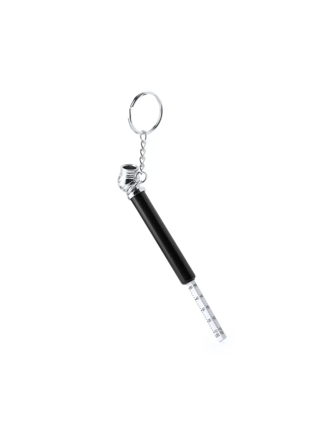 Llavero medidor de presión para neumáticos con cuerpo acabado en aluminio de vivos y variados colores.