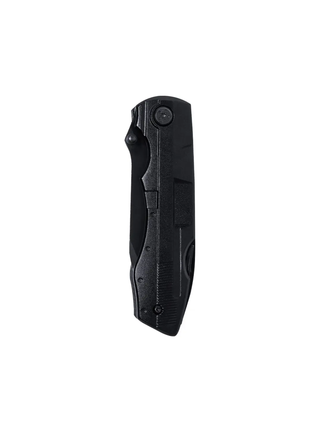Navaja multiusos de acabado negro en acero inoxidable y resistente empuñadura a juego en aluminio. De diseño plegable y tamaño compacto. Incluye 10...
