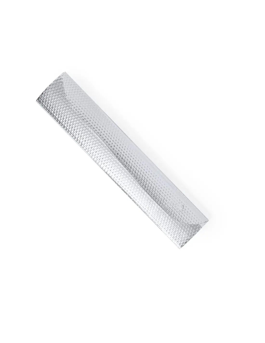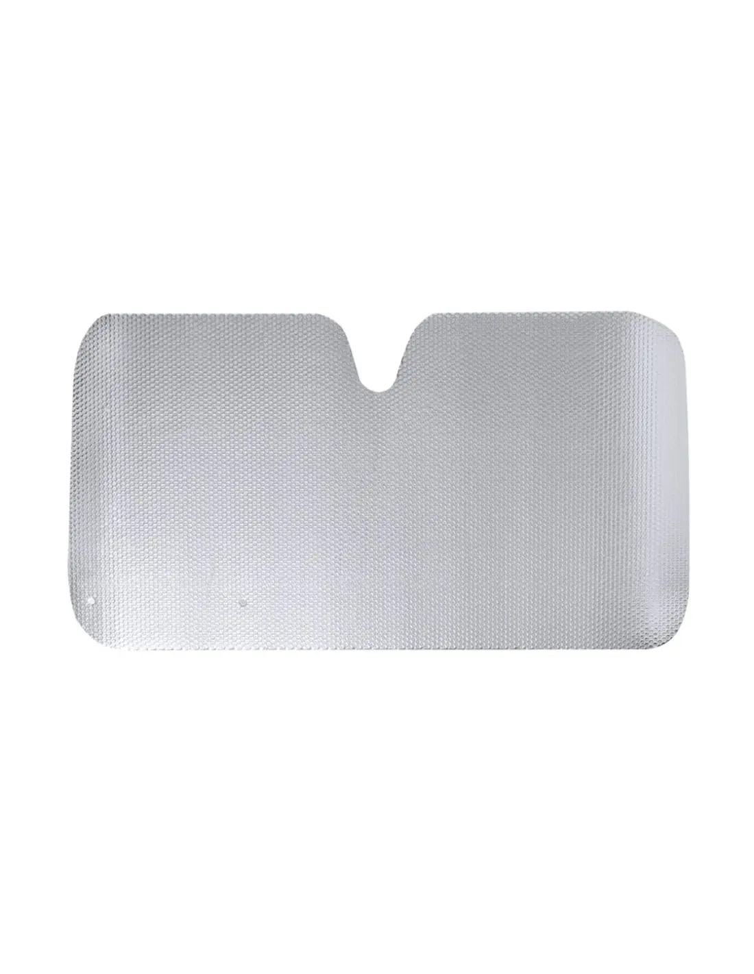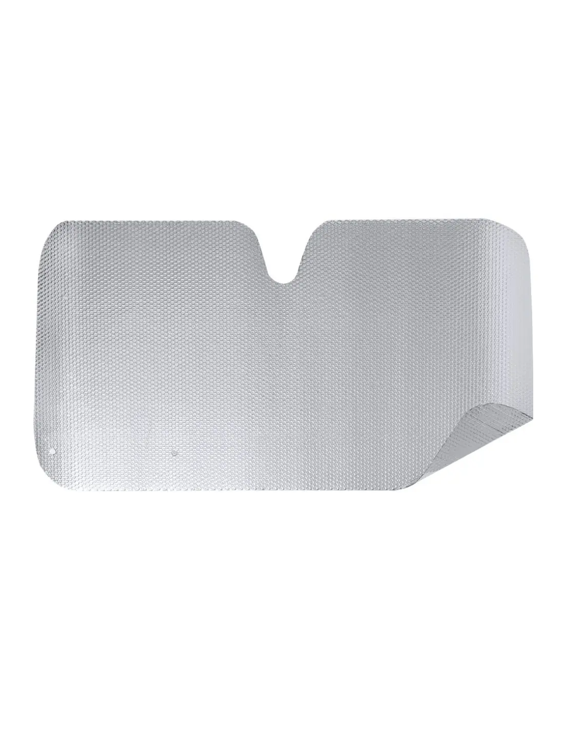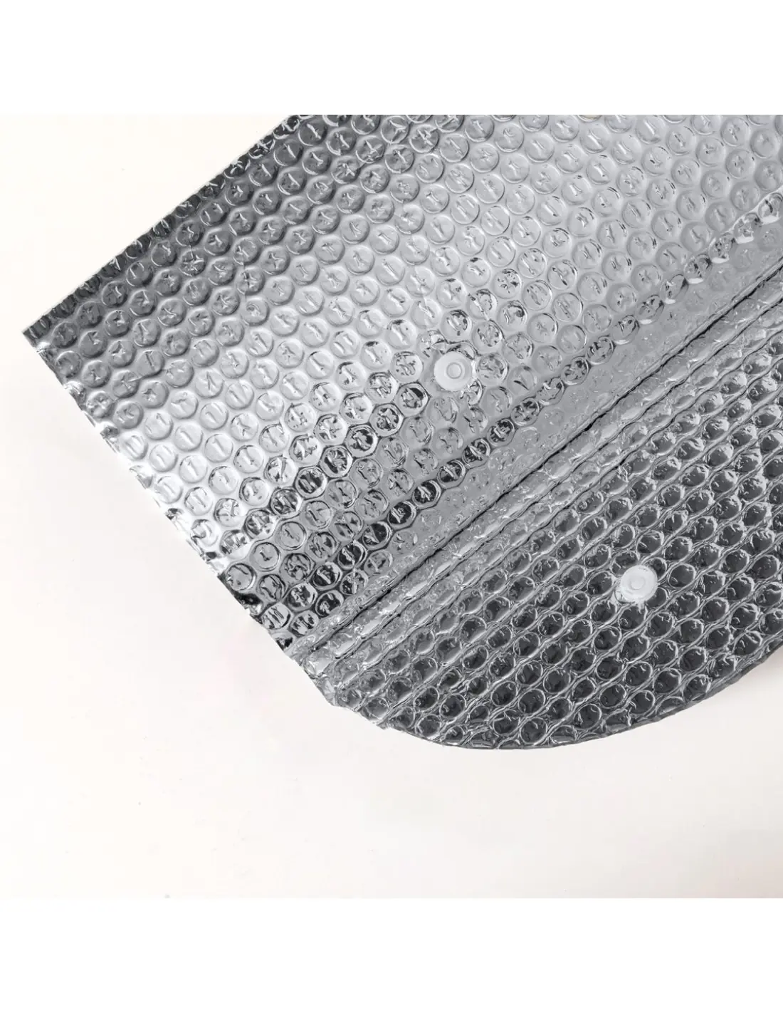 Parasol en aluminio con burbuja en ambas caras y de tamaño 130x70 cm. Acabado plateado metalizado, con original diseño sin ribetes. Fácil y rápido de plegar, con cierre de corchete. Presentación desplegado en plancha para una óptima impresión, con bolsas aparte.