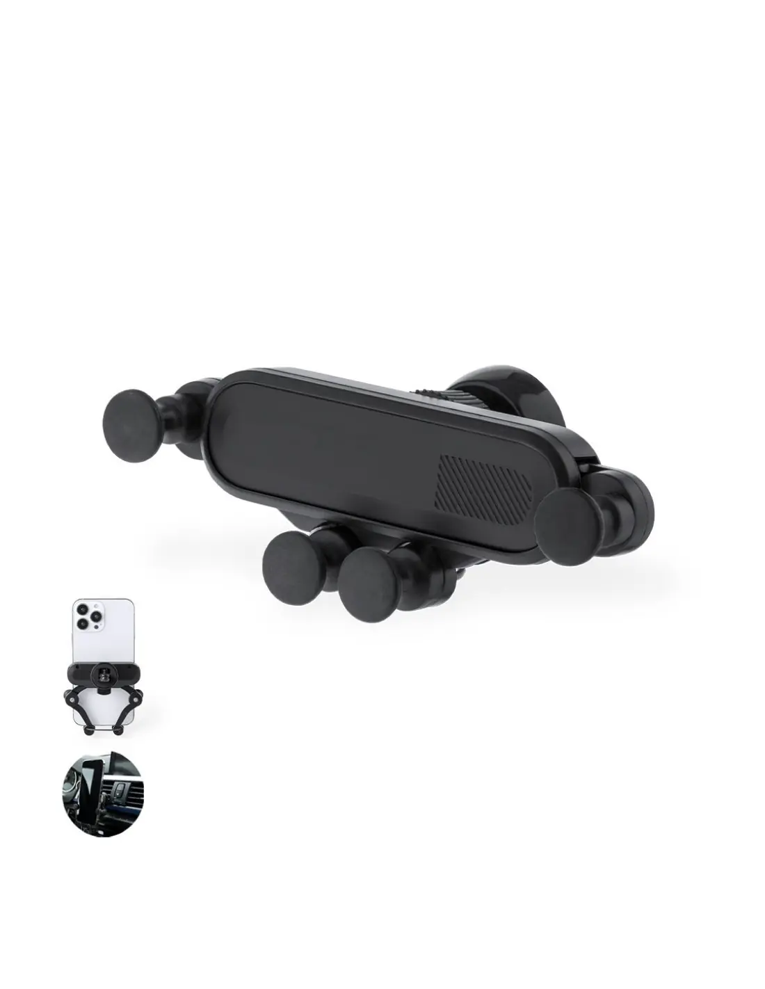 Ingenioso soporte para smartphone de diseño minimalista y especialmente diseñado para smartphones tamaño XXL. Con sistema de fijación universal que se adapta con el propio peso del teléfono, ajustando los enganches de agarre una vez se sitúa el dispositivo en el soporte. Para rejilla de ventilación del automóvil y con frontal especialmente diseñado para marcaje. Presentado en caja de diseño kraft.