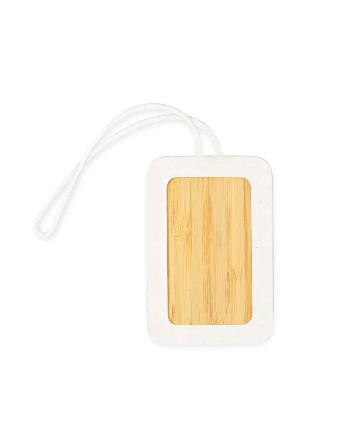 Identificador para maletas fabricado en bambú y silicona veteada. Para sujetar a cualquier maleta gracias a su cinta flexible e indicar información básica. Fabricado en silicona con efecto natural, con placa central en bambú. Presentado en bolsa individual de papel reciclado.Materiales como el bambú fomentan la utilización de materias primas naturales, reduciendo las emisiones contaminantes. Proviene de una planta de gran resistencia y versatilidad, con crecimiento y regeneración rápidos, siendo una excelente alternativa al uso de madera tradicional.