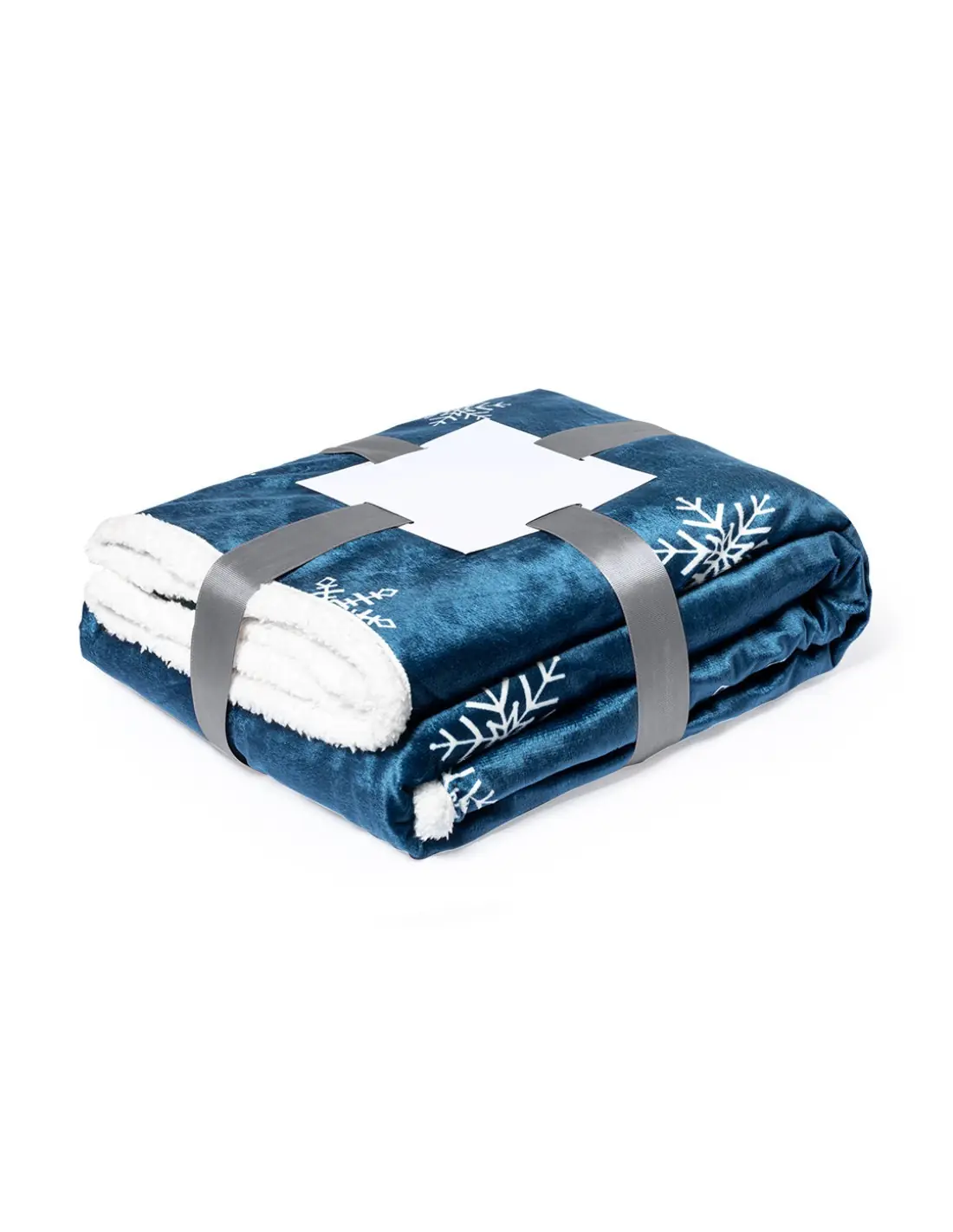 Suave y cálida manta de 125x160cm con decoración navideña. Fabricada en combinación de materiales coral fleece y sherpa de 380g/m2, muy confortables y acogedores. Presentada en cinta con lámina para fácil impresión.
