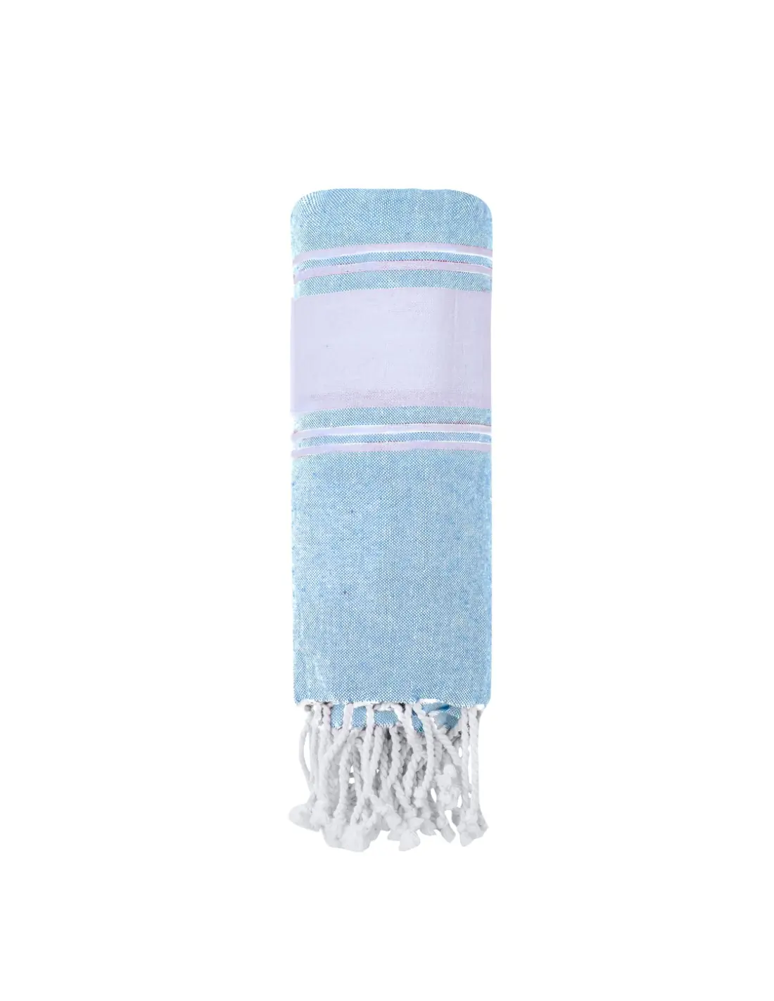 Suave pareo toalla en 100% algodón reciclado de 180g/m2. Disponible en variada gama de colores en tono bicolor. Logotipo en etiqueta lateral....