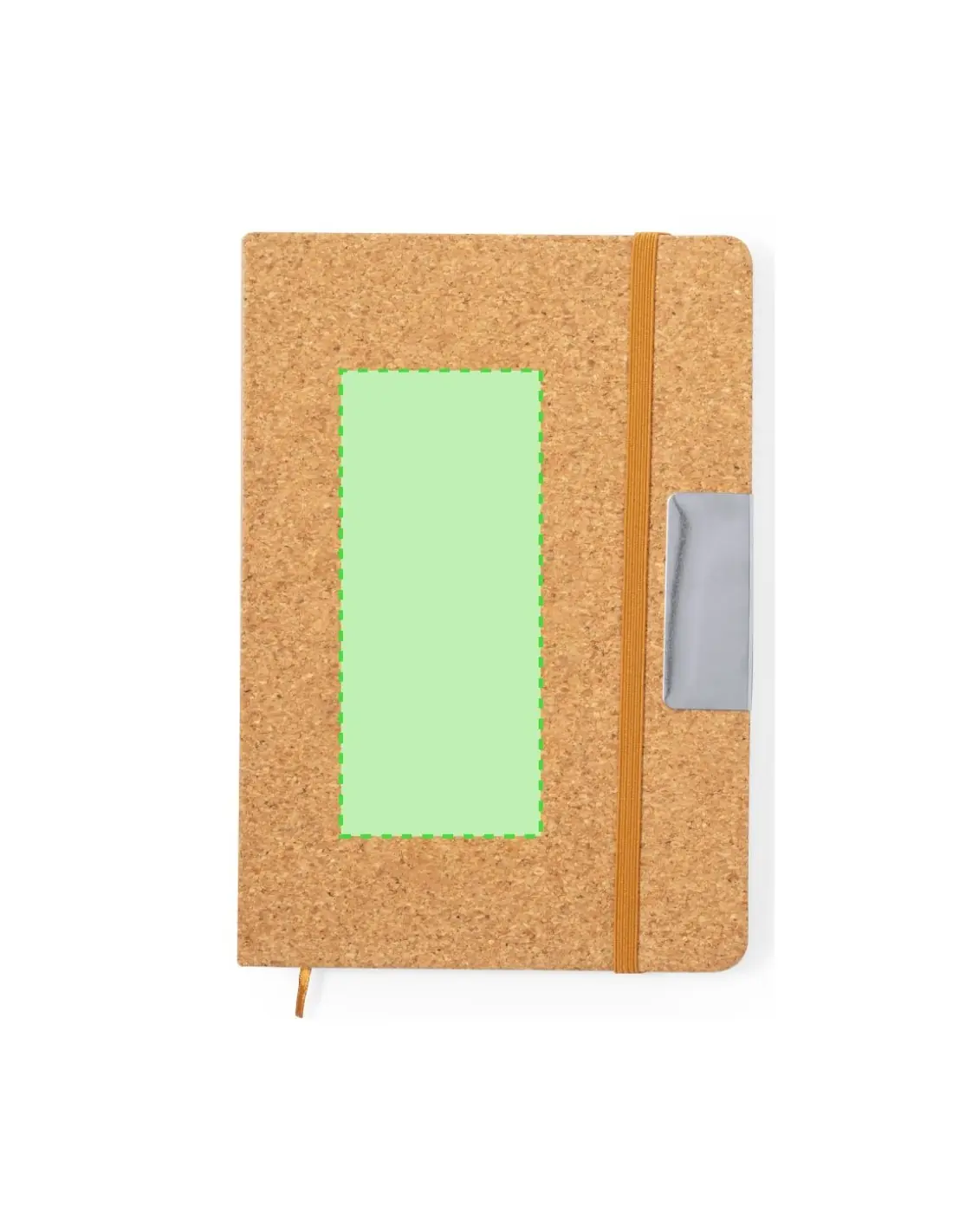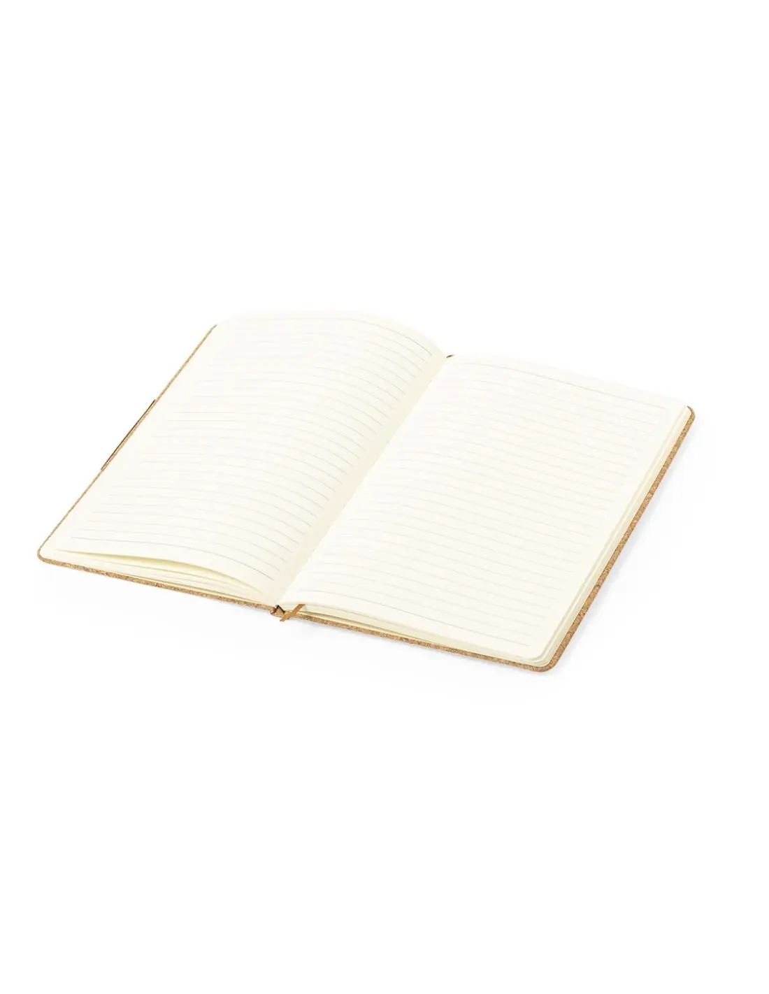 Set de bloc de notas y bolígrafo elaborado en corcho. Incluye:Bloc de notas de tapas rígidas, con detalle metálico en la portada, marcapáginas de...