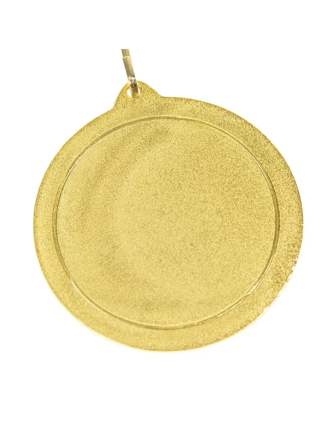 Medalla metálica de acabado dorado en relieve. Con cinta de poliéster en rojo, mosquetón metálico a juego y especialmente diseñada para marcaje en...