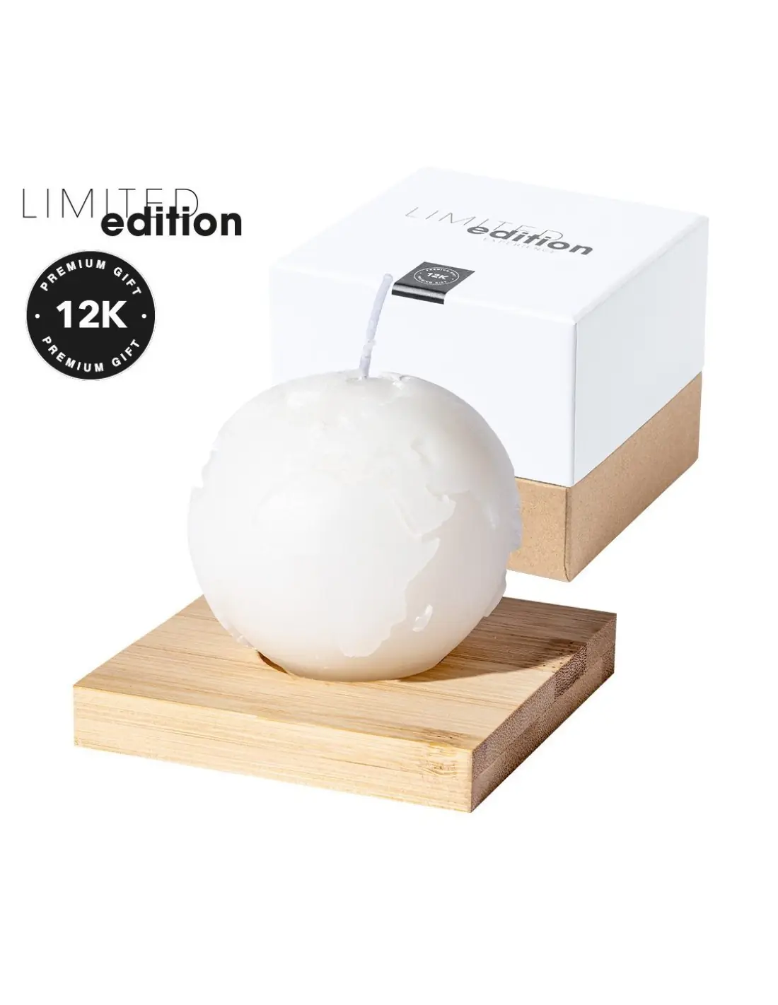 Vela aromática Limited Edition. Envolverse en la sensación de encedender una vela y trasladarse a través de su aroma a vainilla y diseño de bola del mundo. Un regalo ideal para crear ambientes de calma, despertar infinidad de sentimientos y sensaciones o formar parte de la decoración. Incluye base de soporte en bambú natural. De la perfecta combinación entre exclusividad y diseño, nace Limited Edition, una colección especial de ideas promocionales de edidición limitada. Un nuevo concepto, inspirado en la fusión de artículos premium con las últimas y más novedosas tendencias y que cuenta con una seleción limitada de unidades, convirtiendo así un regalo en una experiencia única e inolvidable. Exclusivo estuche de presentación Limited Edition,’, con diseño protegido por derechos de propiedad industrial. Incluida tarjeta con descripción de Limited Edition en cartón reciclado.
