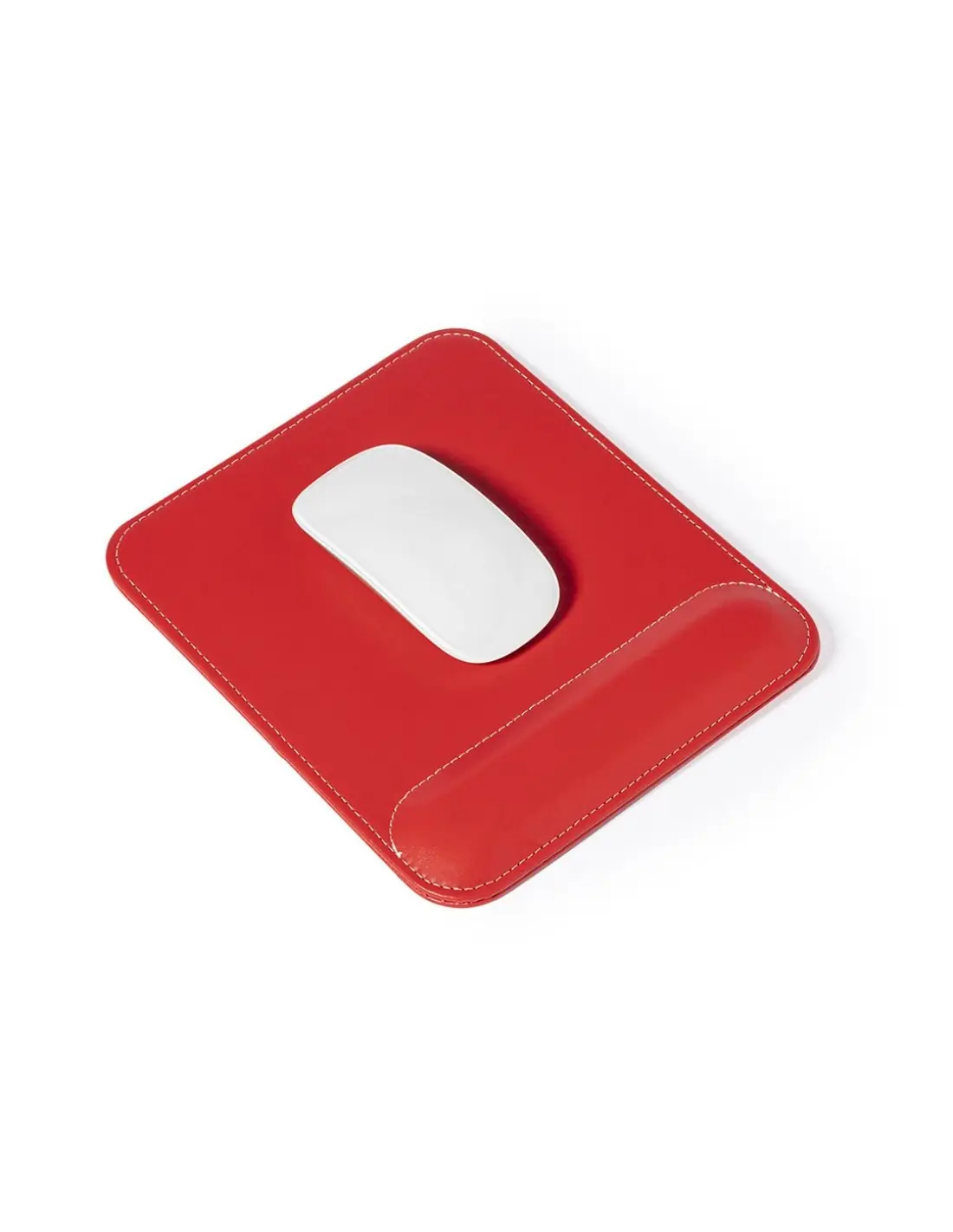 Alfombrilla para ratón fabricada en suave polipiel, con contraste de color blanco en las costuras. Base antideslizante y reposa muñecas acolchado para prevenir el estrés y el dolor en las articulaciones. Presentada en estuche individual.
