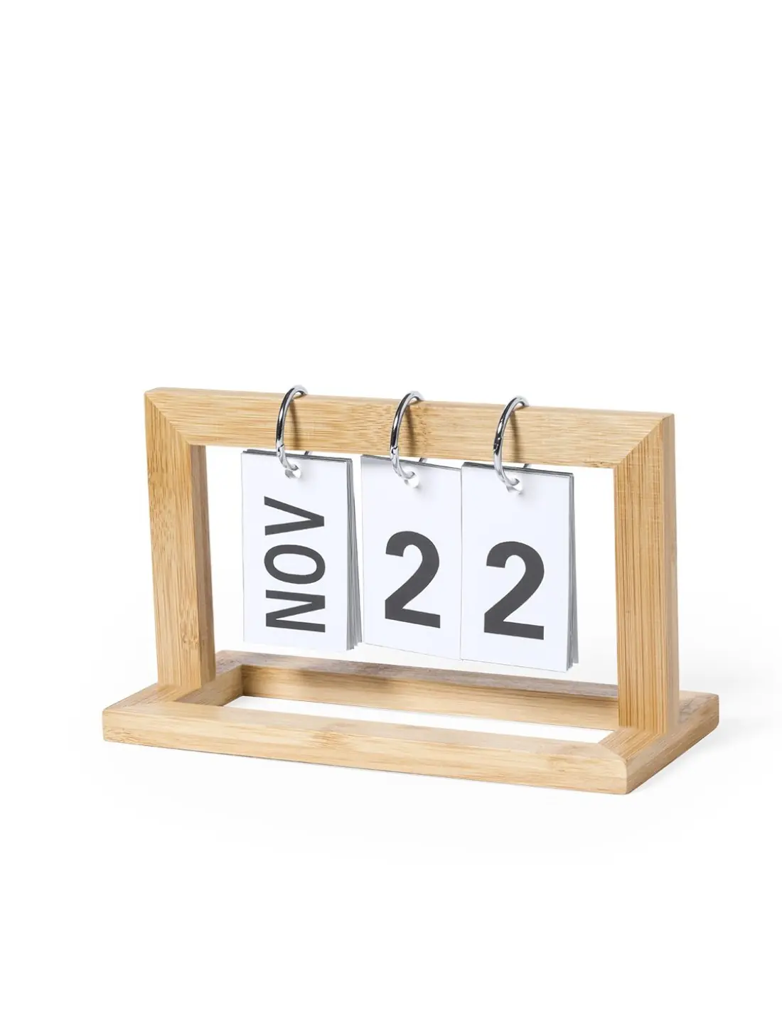 Calendario perpetuo de línea nature: ya no es necesario cambiar de calendario cada año, con el beneficio al medio ambiente que esto supone. Fabricado en bambú, con anillas metálicas cromadas. Tipografía de fácil lectura y especialmente diseñado para marcaje en láser.