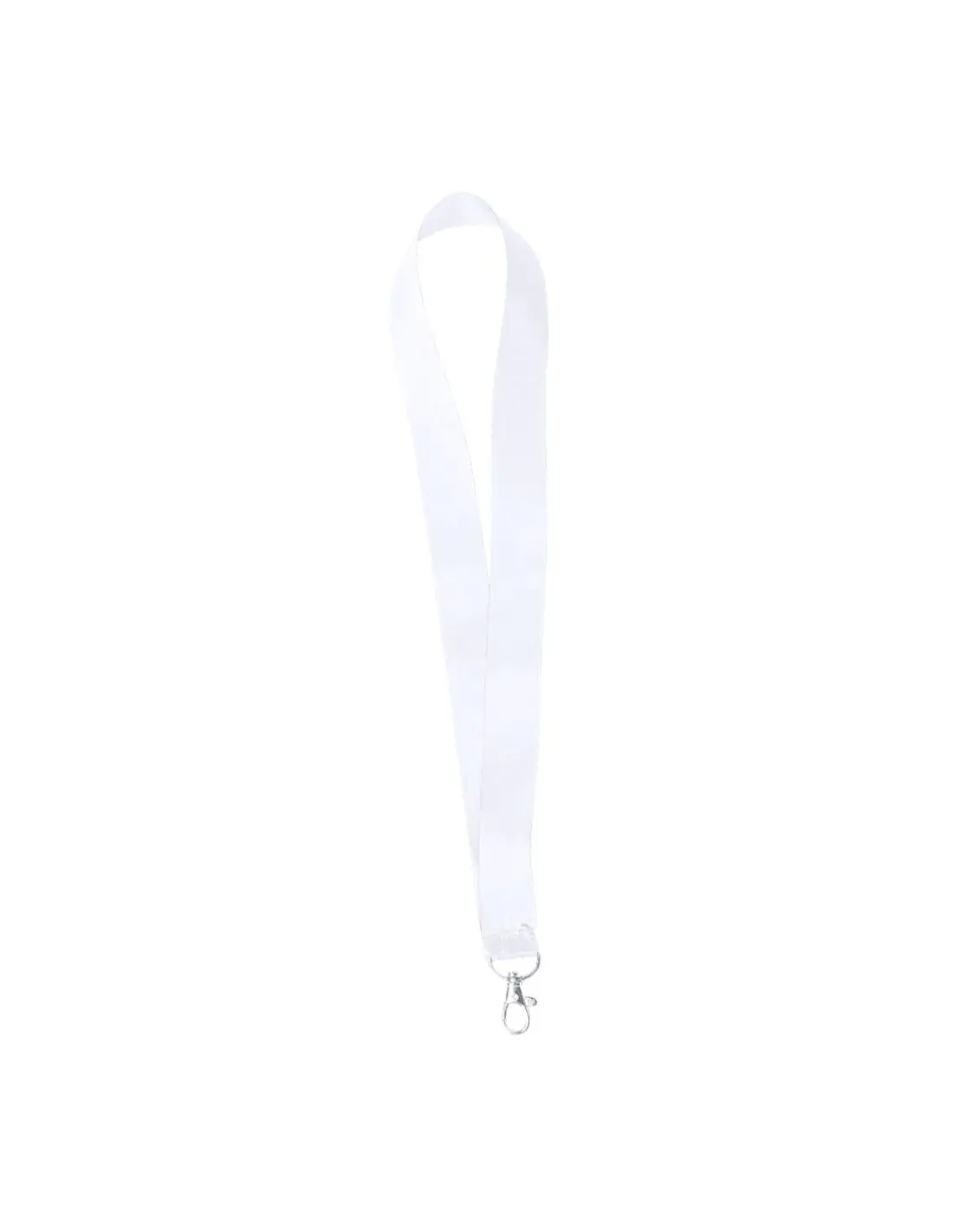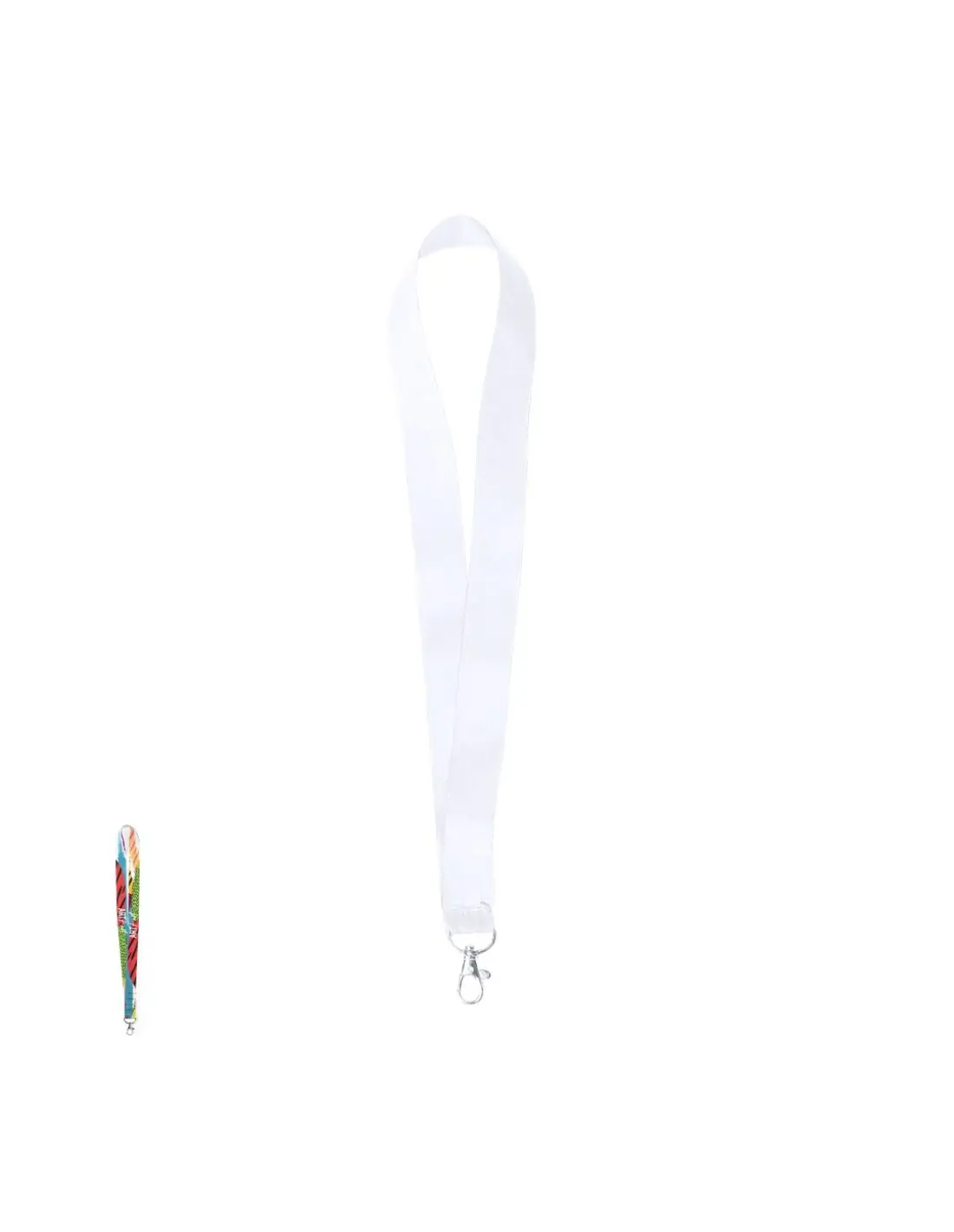 Lanyard con tiras de ancho especial en resistente y suave poliéster con accesorio mosquetón metálico. Especialmente diseñado para personalización total en sublimación para pedidos a partir de 250 piezas.