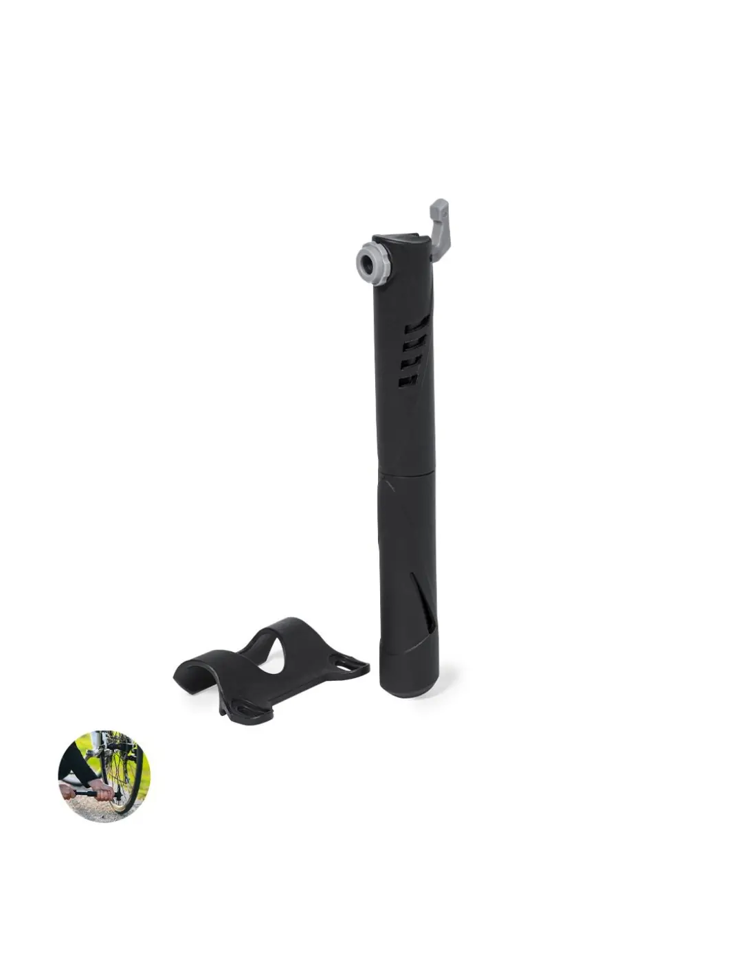 Práctica bomba para bicicleta, fabricada en resistente aluminio. De inflado manual y en tamaño reducido, con accesorio de acople válido para cualquier tipo de bicicleta.