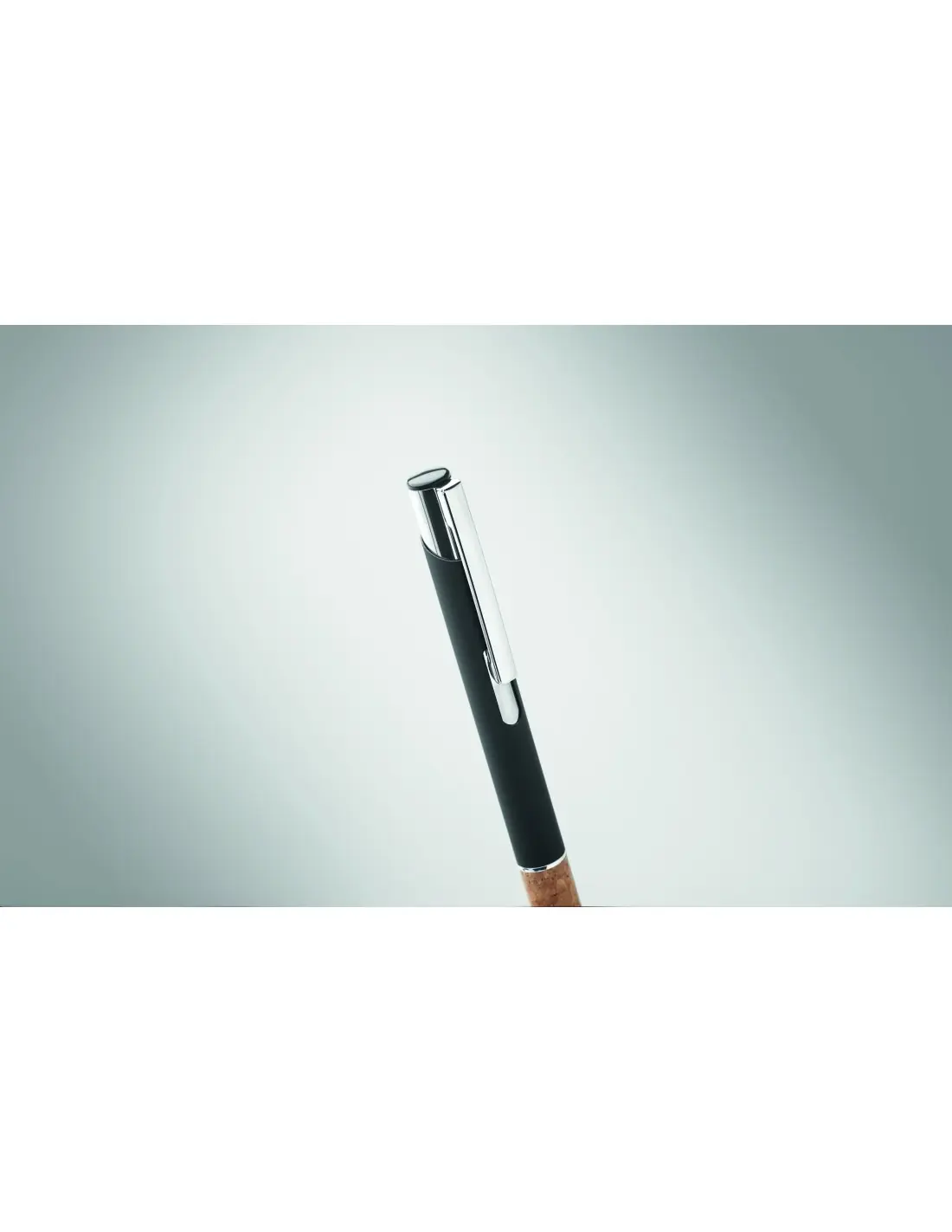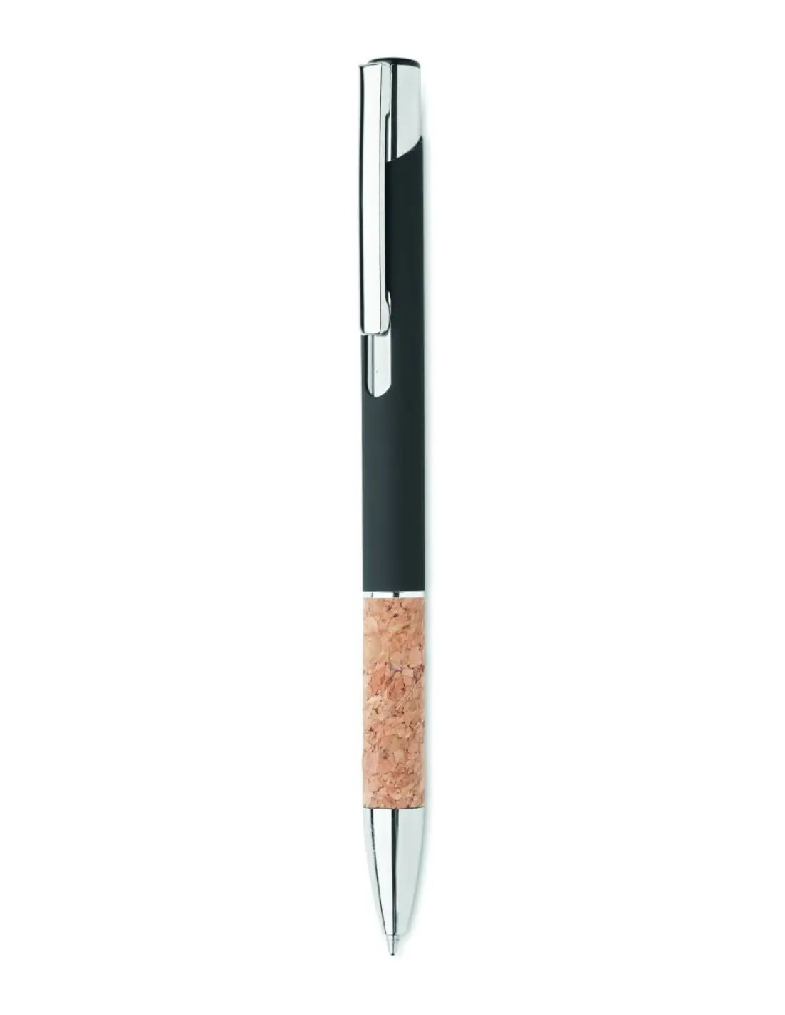Bolígrafo con pulsador de aluminio con empuñadura de corcho. Tinta azul.