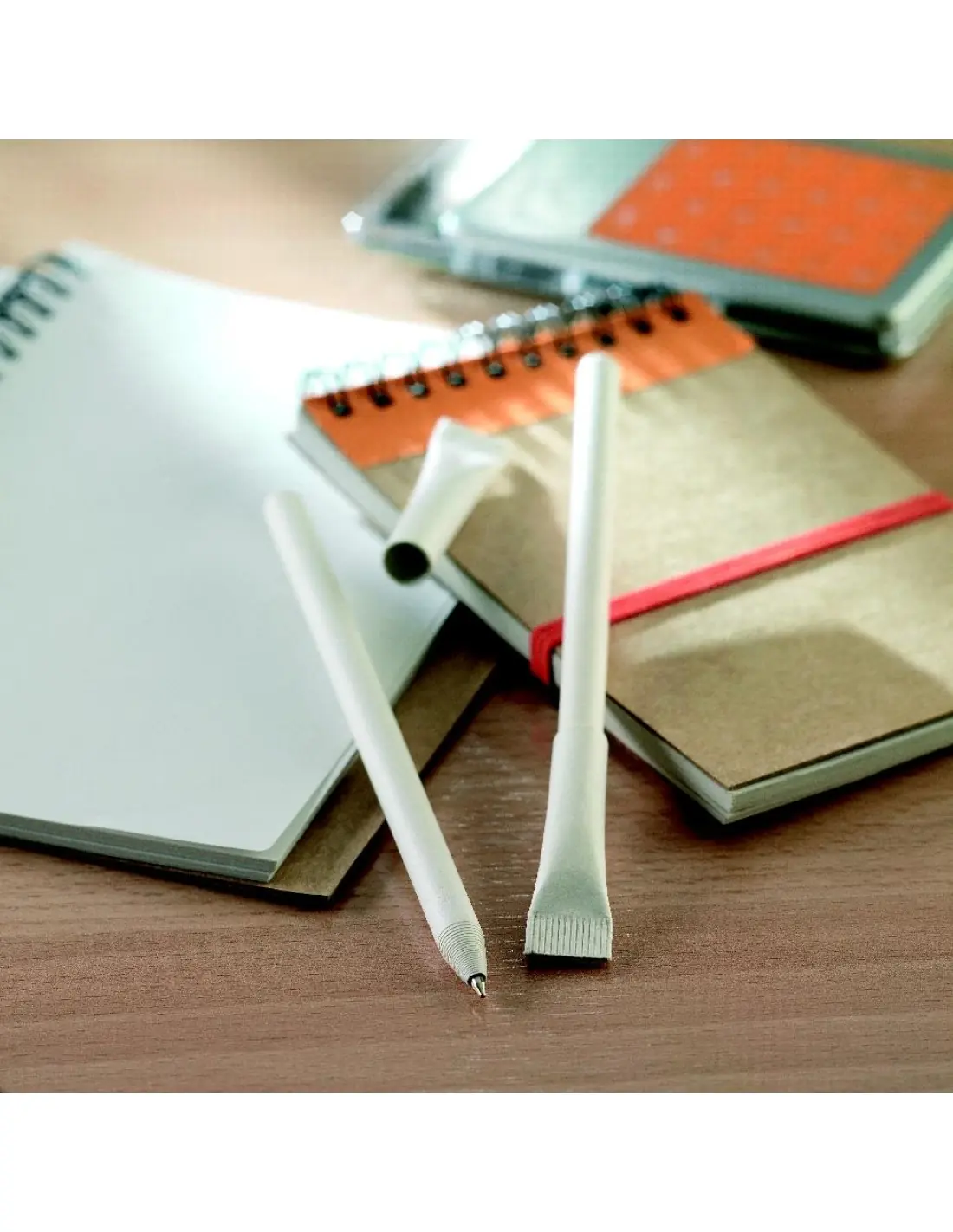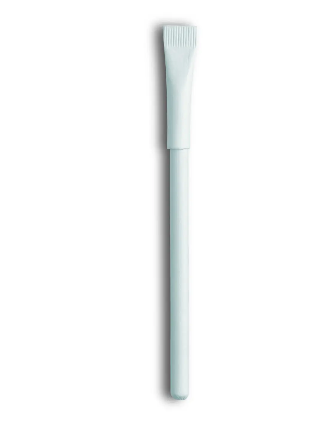 Bolígrafo con tapón hecho 100% de cartón reciclado. Tinta azul.