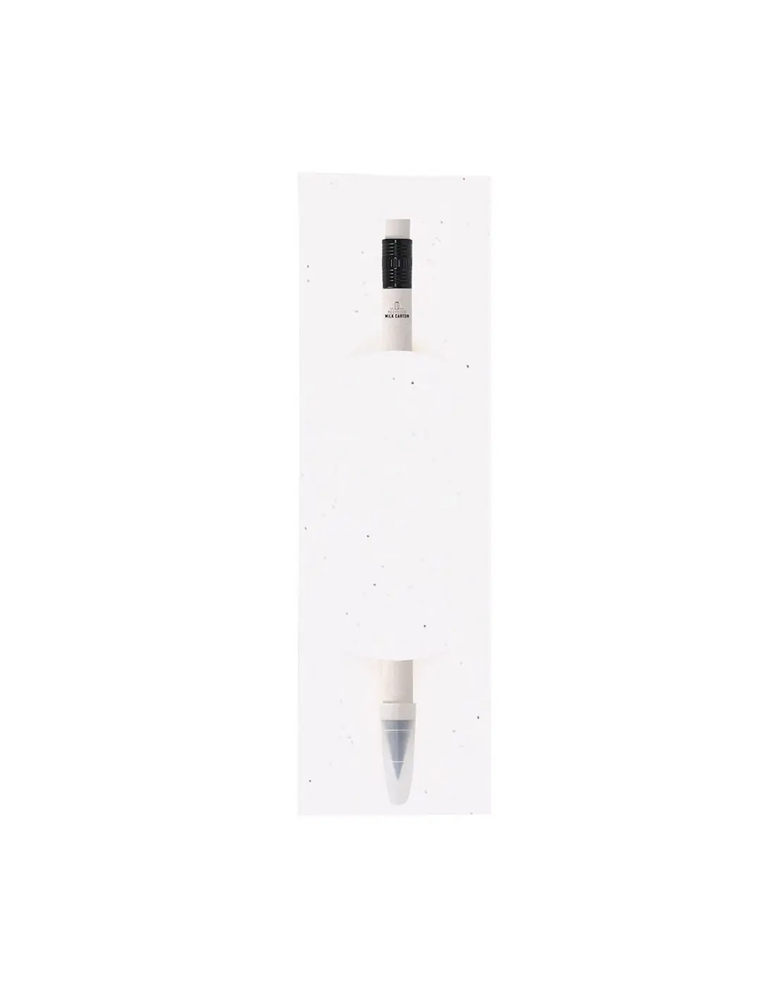 Lápiz eterno fabricado con cartones de leche reciclados, presentado en funda de papel con semillas. Reutilizable y con escritura infinita. Incluye goma de borrar en la parte superior del lápiz y capucha de protección. De color blanco, con detalles en negro. Con distintivo de cartón de leche reciclado en el cuerpo. La funda incluye semillas de petunia, convirtiéndolo en papel plantable al final de su vida útil. Incluye instrucciones de plantado en la cubierta trasera.Los Cartones de Ceche se componen en su mayor parte de cartón y aluminio. Durante su proceso de reciclado, se separan los distintos materiales del envase para su reutilización y nuevo uso, contribuyendo así a recorrer el camino infinito de la economía circular. Este material se caracteriza por su alto grado de reciclabilidad, así como por su ligereza y resistencia.