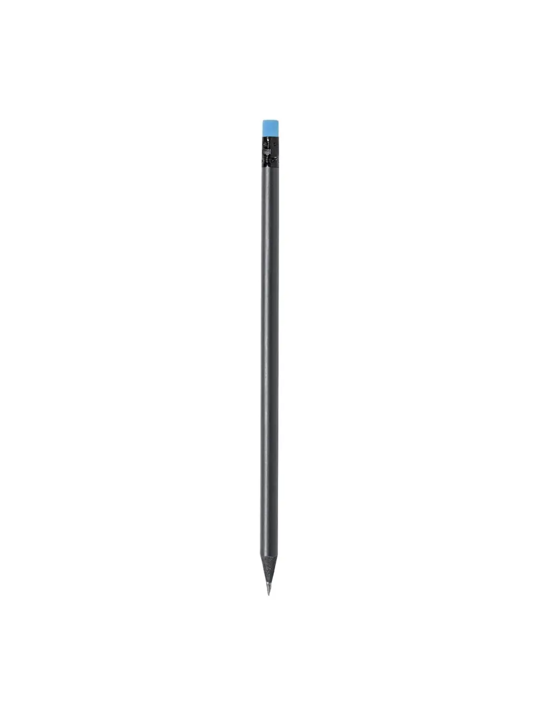 Elegante lápiz de color negro fabricado en madera natural, con práctica goma y disponible en diversos colores. Con mina negra y punta afilada.