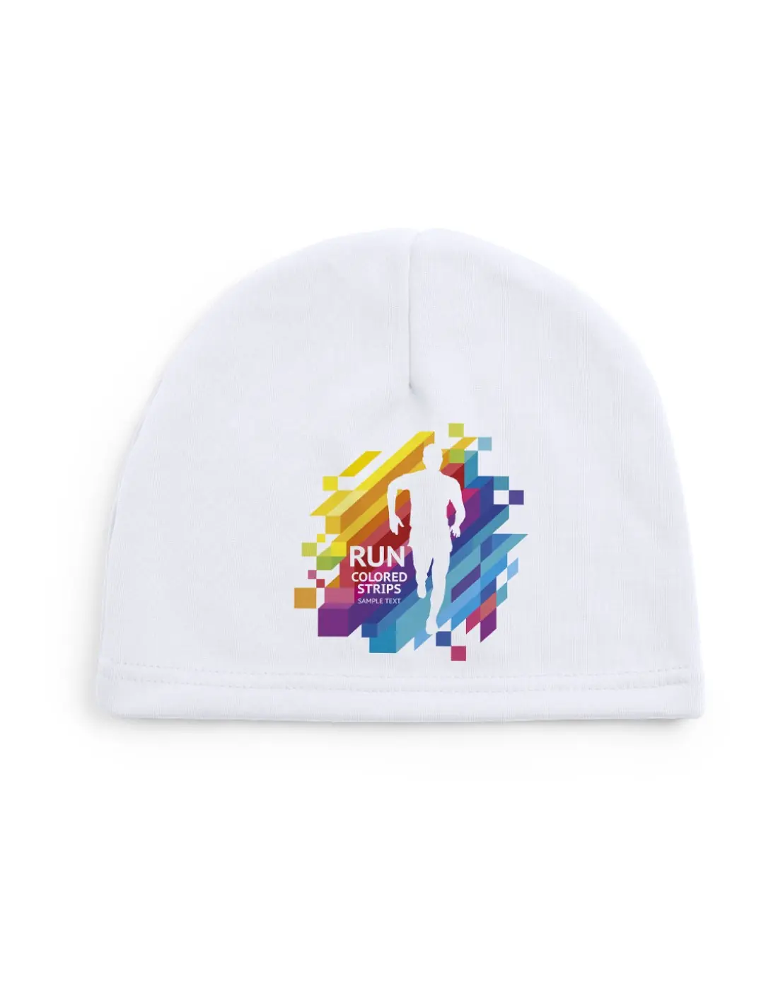 Gorro deportivo de alta calidad en combinación de materiales poliéster/spandex y coral fleece de 280g/m2. Color blanco ideal para sublimación y resto de gama de colores ideales para una fácil impresión. Cómodo ajuste.