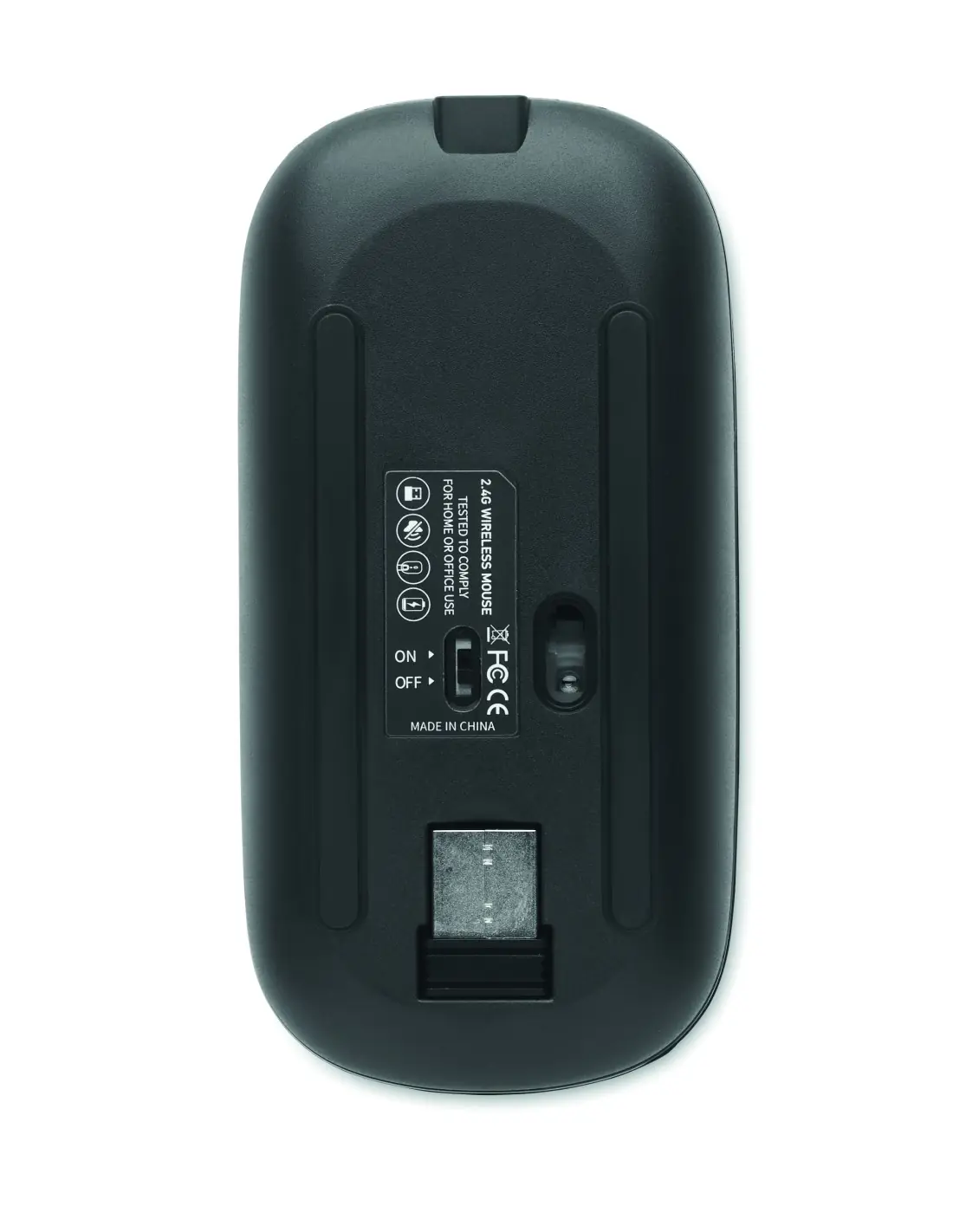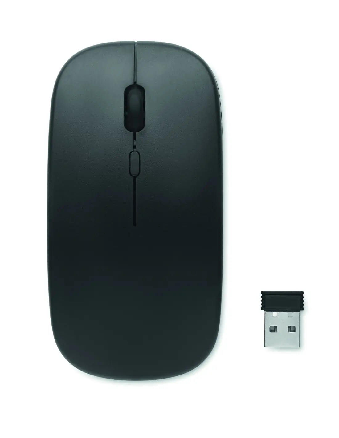 Ratón óptico inalámbrico en ABS reciclado con batería USB recargable de 500 mAh.