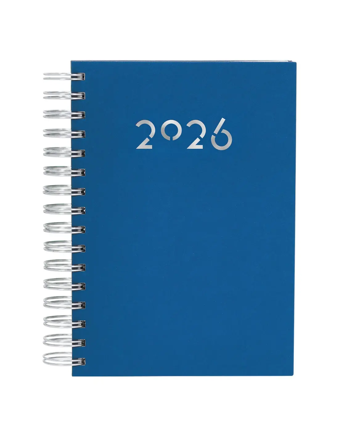 Agenda de anillas tamaño A5, acabada en resistente y suave PU. Con cubiertas rígidas. Incluye caja kraft de presentación.Diseño página día y páginas con esquina troquelada para marcar el día. En 2 idiomas: castellano e inglés.