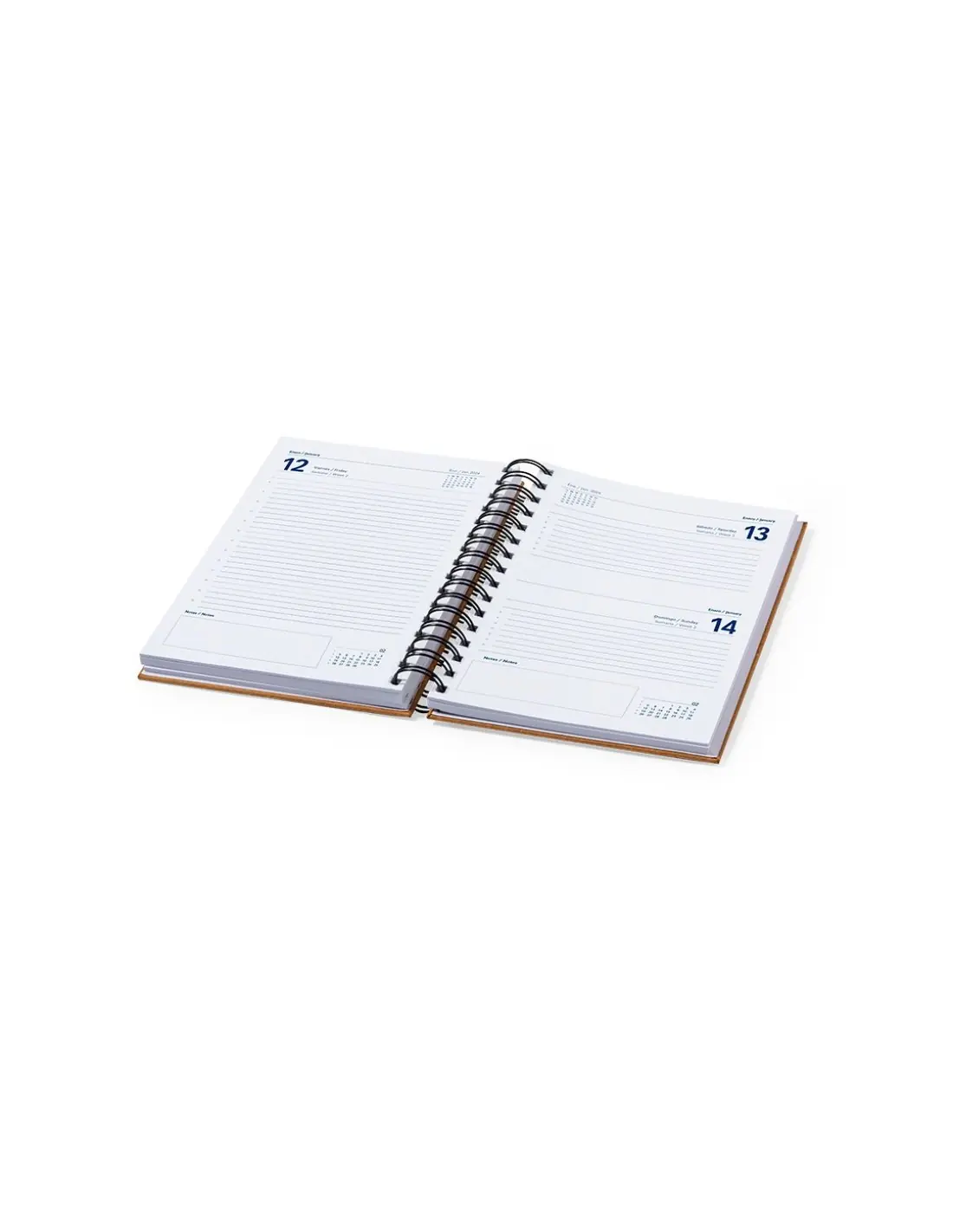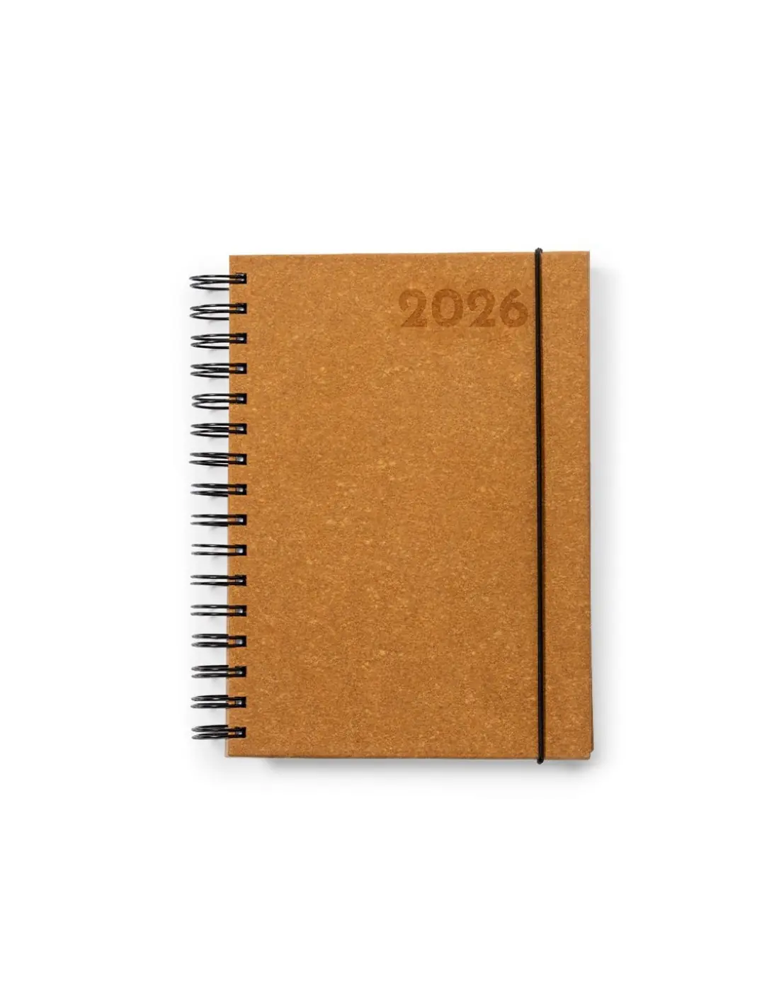 Agenda de tamaño A5 fabricada en elegante y sostenible cuero reciclado. Con cubiertas rígidas y elástico de cierre. Con distintivo cuero reciclado.Diseño página día, zona de anotaciones por día y páginas con esquina troquelada para marcar el día. En 2 idiomas: castellano e inglés. Presentado en caja kraft. El cuero reciclado rescata las fibras desechadas en los procesos de fabricación del cuero, minimizando el desperdicio de material, contribuyendo a reducir el impacto ambiental y manteniendo a la vez sus propiedades originales.