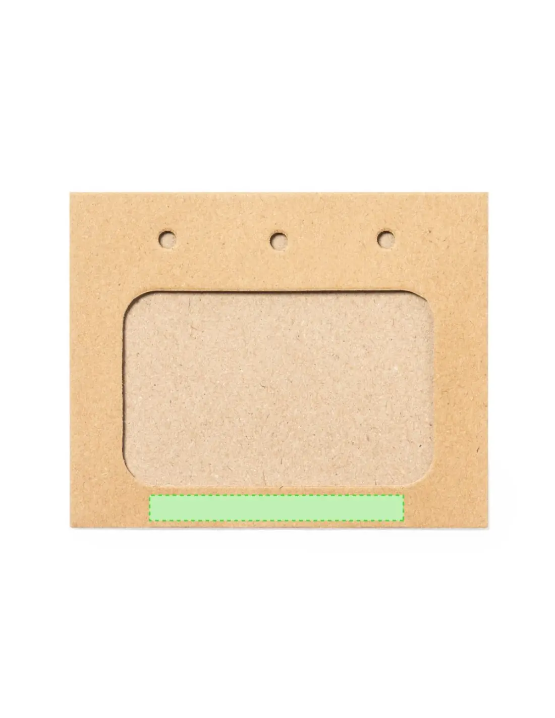 Identificador de línea nature fabricado en resistente cartón reciclado. Con triple troquelado y ventana de 8,5x5,3 cm.