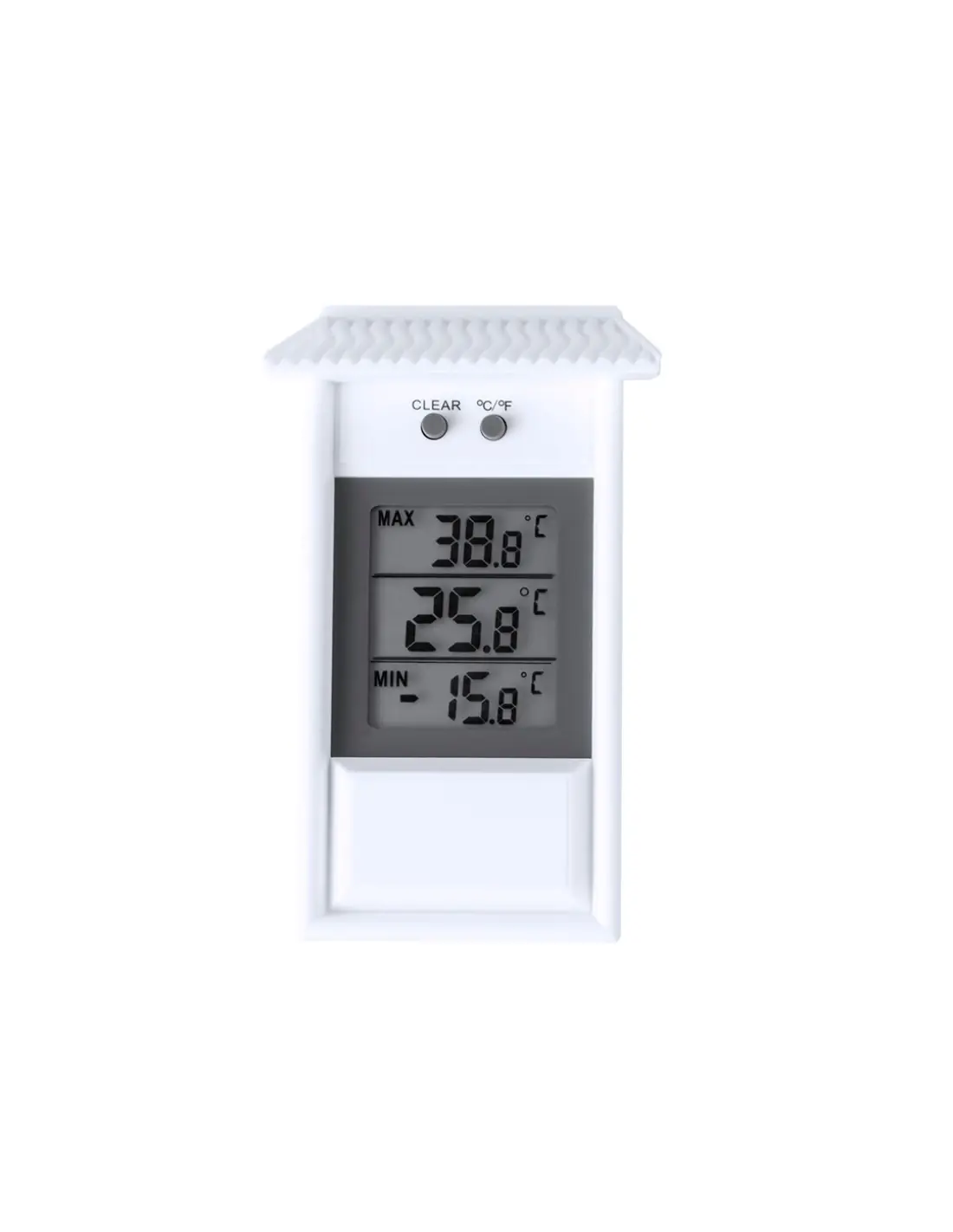 Práctica estación meteorológica de exterior y para colgar, con diseño de caseta. Con pantalla LCD para lectura rápida de temperatura máxima, media y mínima. En la parte superior contiene botón de reinicio y botón para elegir entre ºC o ºF. Inspirador diseño de caseta para poder colgar. Alimentado por 2 pilas AAA (no incluidas). Con instrucciones en español e inglés. Presentada individualmente en caja de diseño kraft.