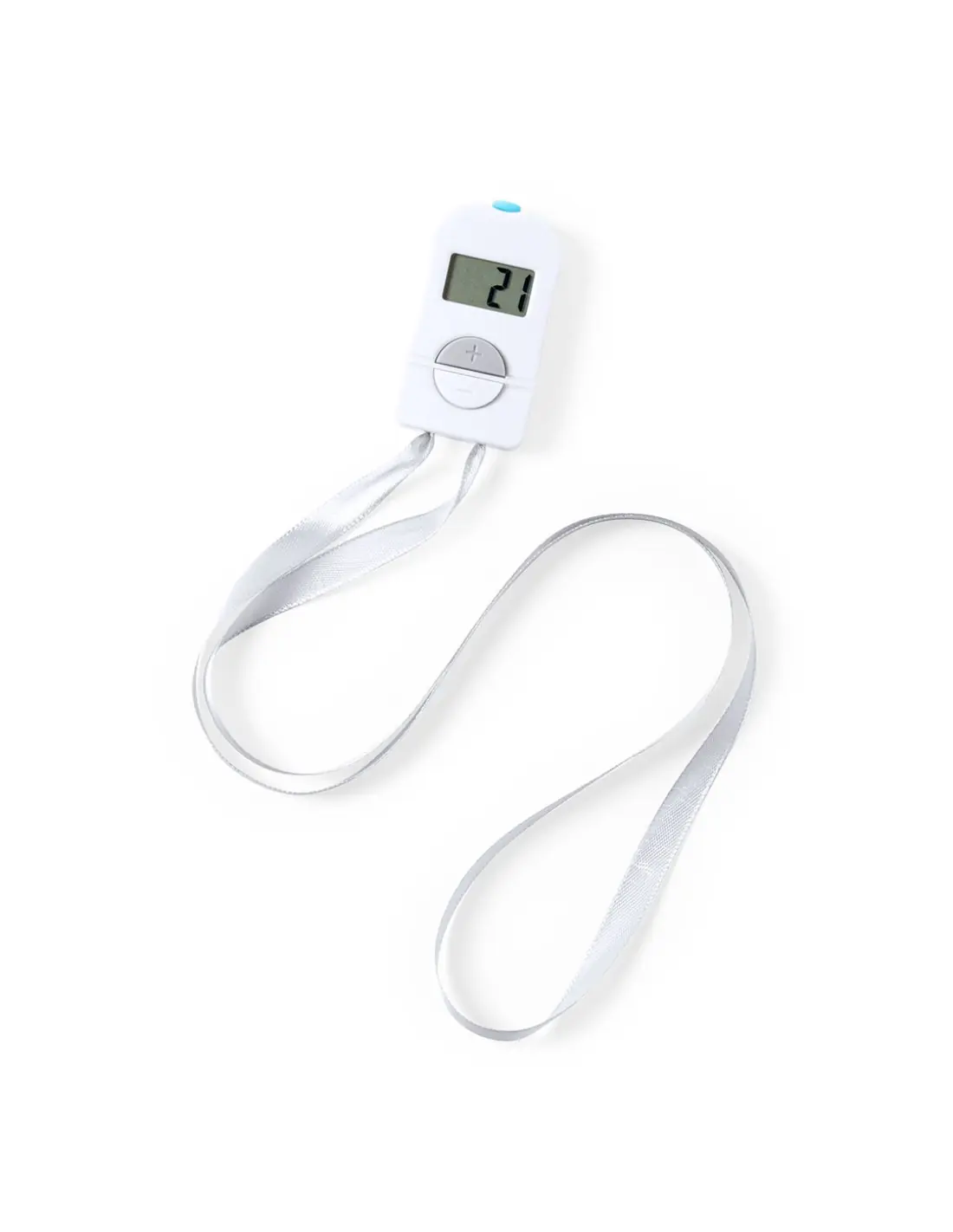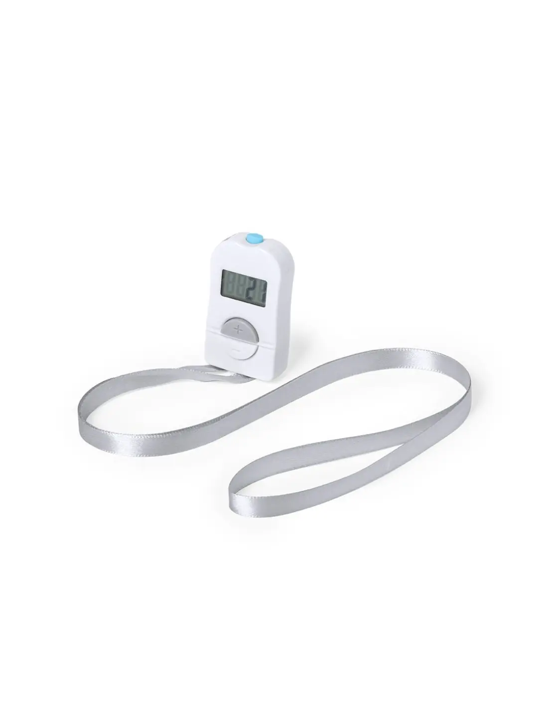 Contador de aforo digital fabricado en resistente material ABS de acabado brillo, con práctica cinta de poliéster y amplios pulsadores para añadir o restar aforo. Pantalla digital con contador de 4 dígitos y botón de reinicio en parte superior. Amplia superficie para logotipo, especialmente diseñado para marcaje en tampografía. Presentado en atractiva caja individual de diseño. Alimentación a pilas, de botón incluida.