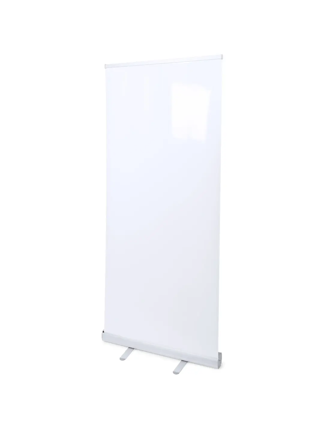Panel de impresión roll up de 85x200cm en resistente polipropileno de alta densidad especialmente diseñado para marcaje a todo color. Con soportes de aluminio y gancho de sujeción. Presentación enrollado en funda de tela.