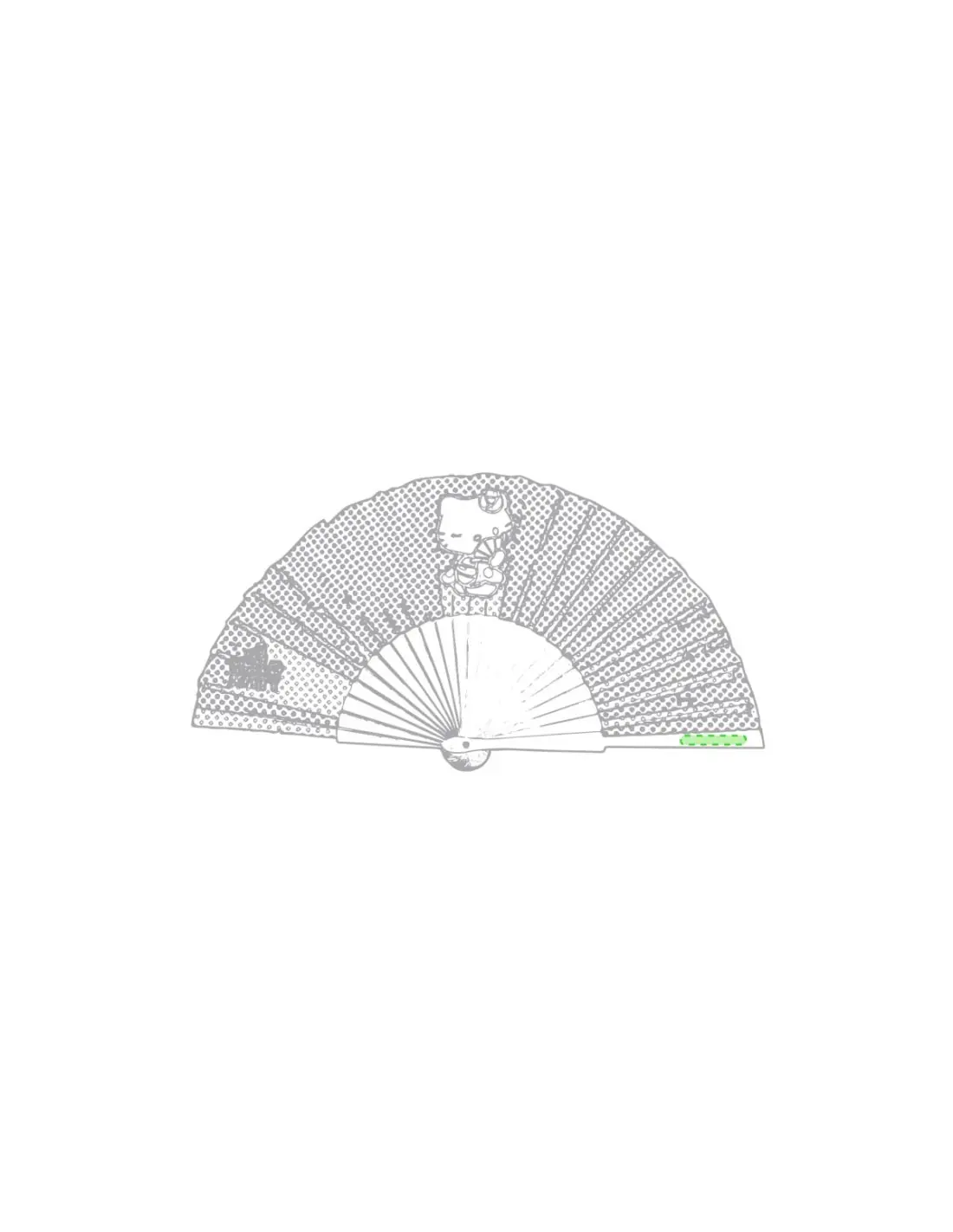 Abanico de Hello Kitty con varillas en madera natural y original diseño en tela con gatito de la marca. Presentado en caja individual.