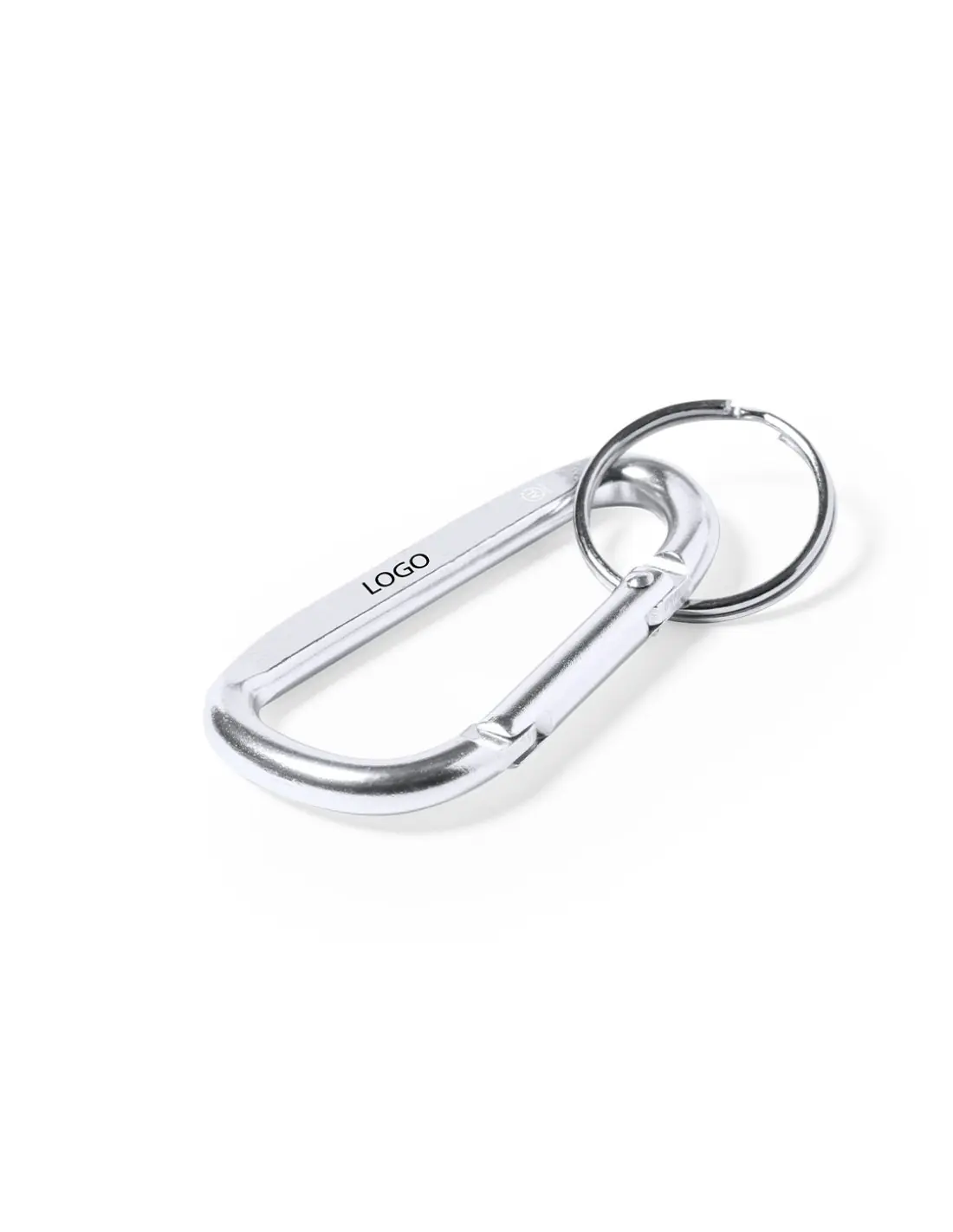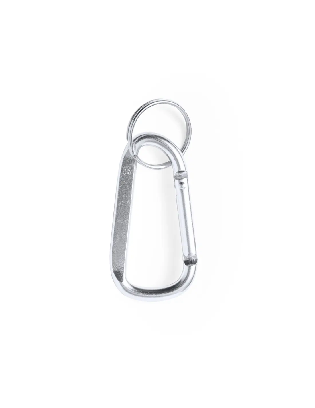 Mosquetón en aluminio reciclado de acabado plateado. Con anilla llavero metálica a juego y distintivo aluminio reciclado.El aluminio reciclado es un material con posibilidades de reciclaje casi infinitas, sin perder sus propiedades originales y consumiendo menos energía en este proceso.