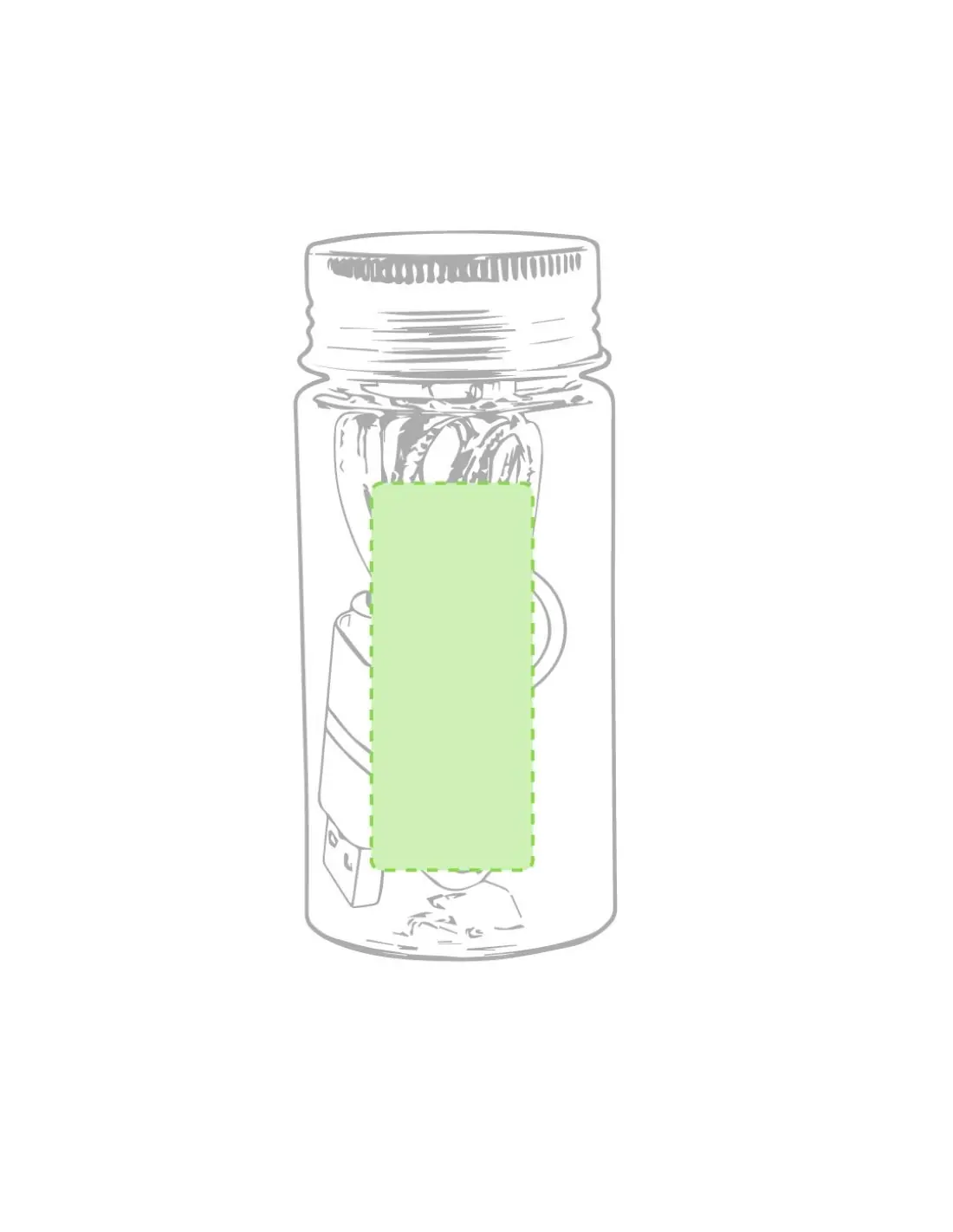 Área | En el cuerpo del USB cara A: 1 x 1 cm |