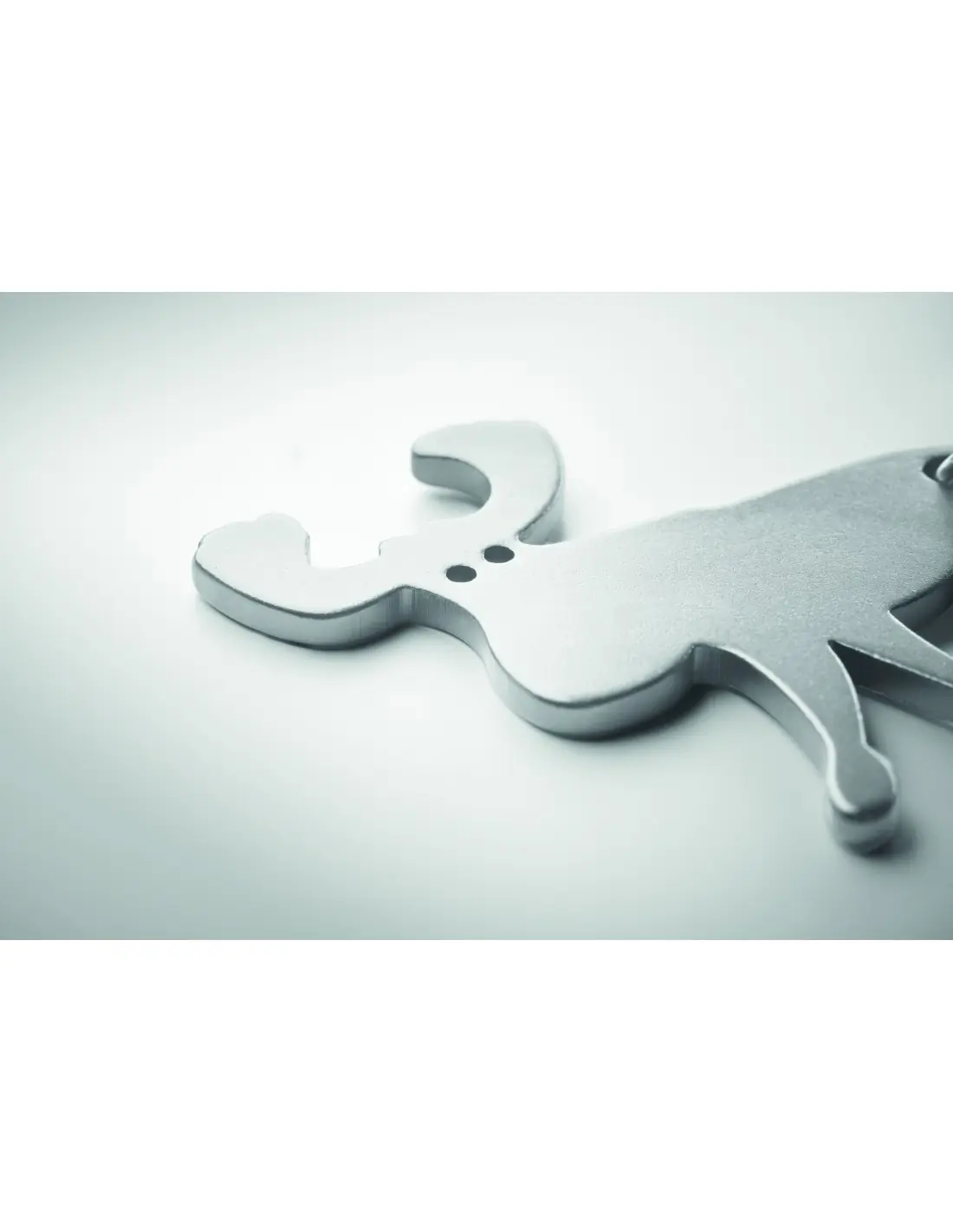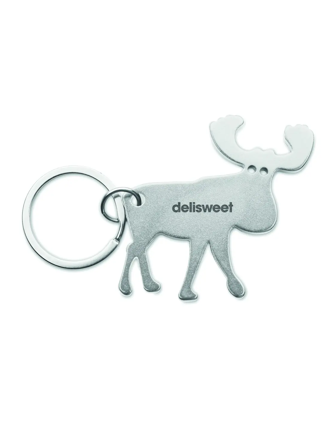 Llavero de aluminio reciclado con abrebotellas en forma de reno.