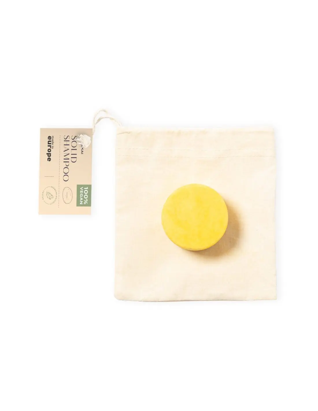 Champú sólido vegano Shikakai de 80 gr, elaborado con una selección de ingredientes activos como la oliva virgen, manteca de karité bio, zanahoria y extractos botánicos de shikakai. Rico en vitamina E, aportando al cabello limpieza, sedosidad y vigor. De agradable fragancia que aporta un estado de placer y bienestar interior. Presentación en bolsa individual de algodón, con cierre de cordón y etiqueta distintiva. Dermatológicamente testado y de fabricación europea. Producto sostenible y 100% vegano, sin ingredientes de procedencia animal. Además, no se han realizado pruebas de estos productos en animales, promoviendo el cuidado y respeto de todos ellos.