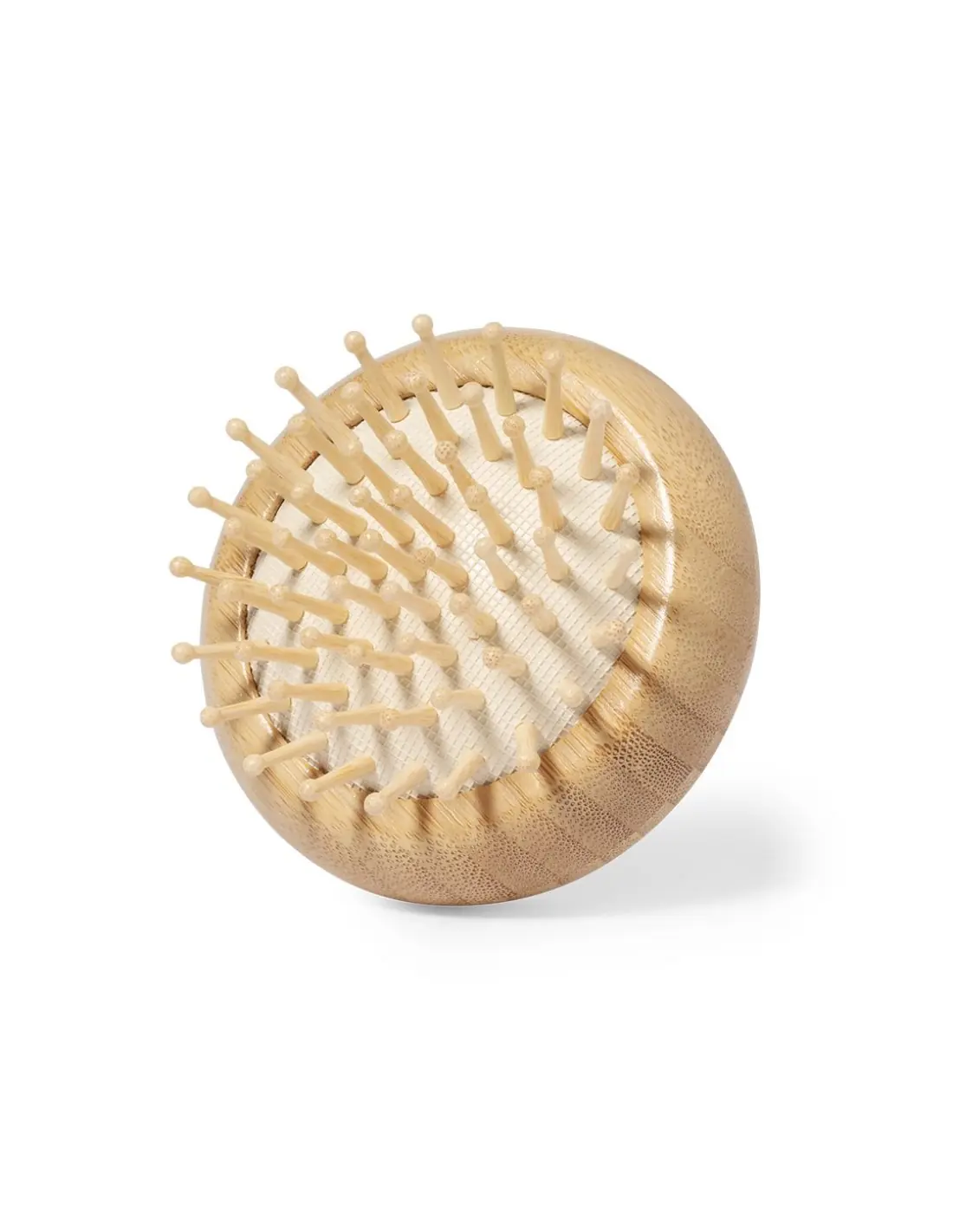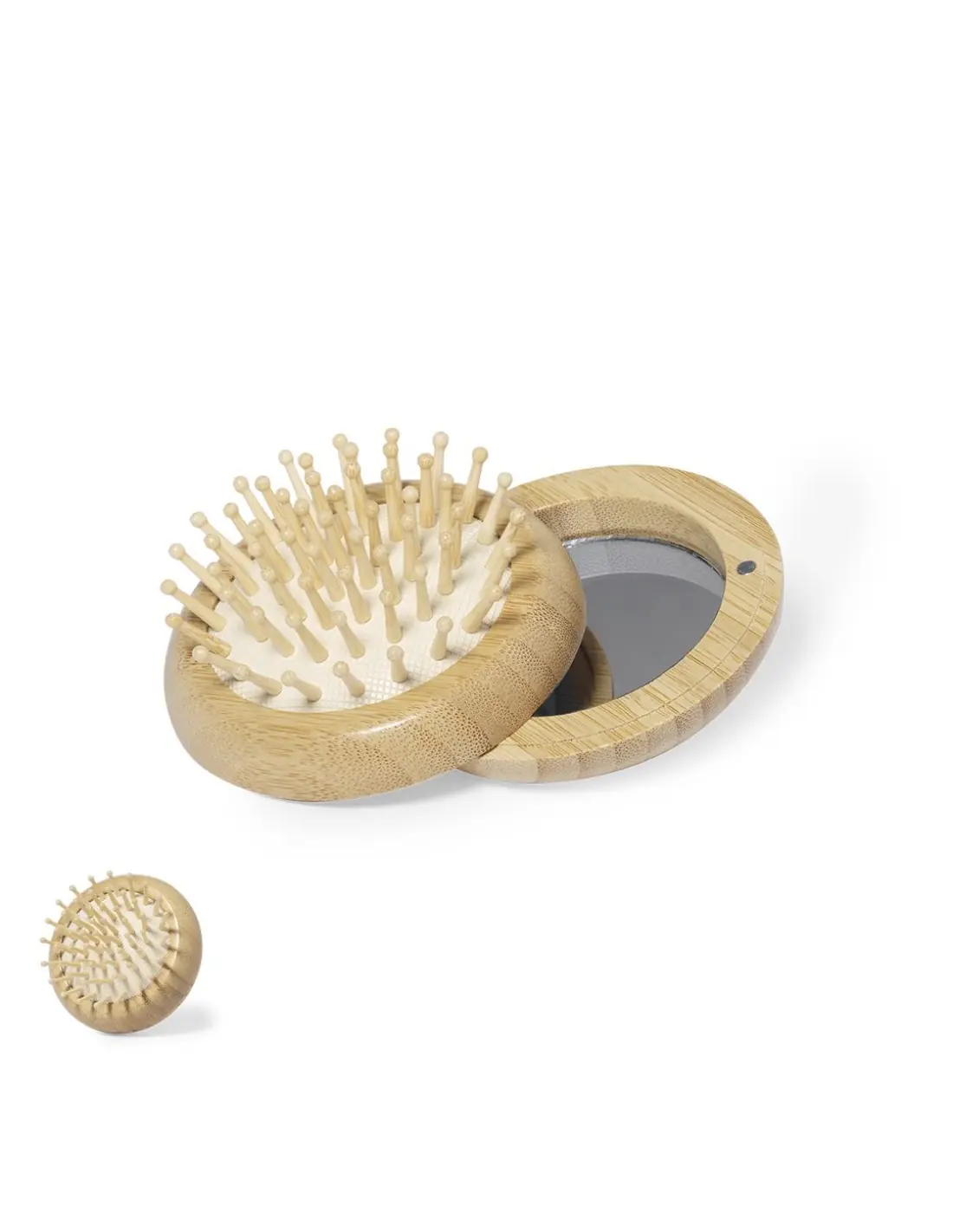 Original cepillo con espejo fabricado en bambú natural. Su unión mediante imanes y su compacto tamaño lo convierten en un perfecto accesorio para el día a día. Presentado en caja individual de diseño kraft. Materiales como el bambú fomentan la utilización de materias primas naturales reduciendo las emisiones contaminantes. Además, el bambú proviene de una planta de gran resistencia y versatilidad, con crecimiento y regeneración rápida, siendo una excelente alternativa al uso de madera tradicional.