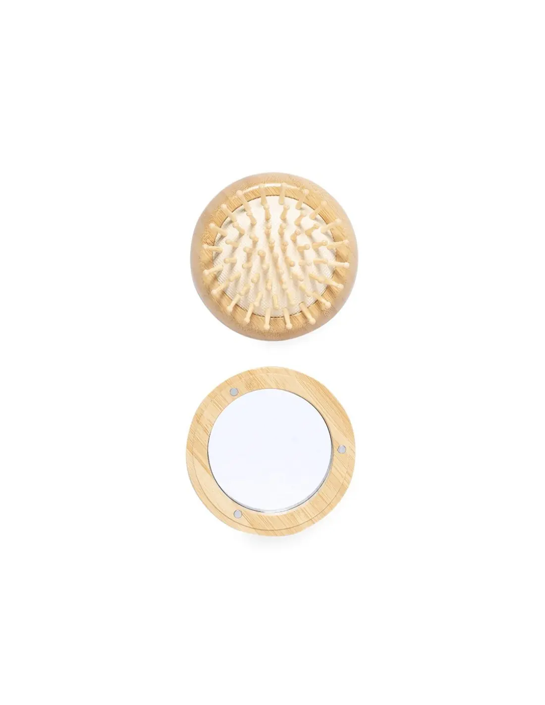 Original cepillo con espejo fabricado en bambú natural. Su unión mediante imanes y su compacto tamaño lo convierten en un perfecto accesorio para el...