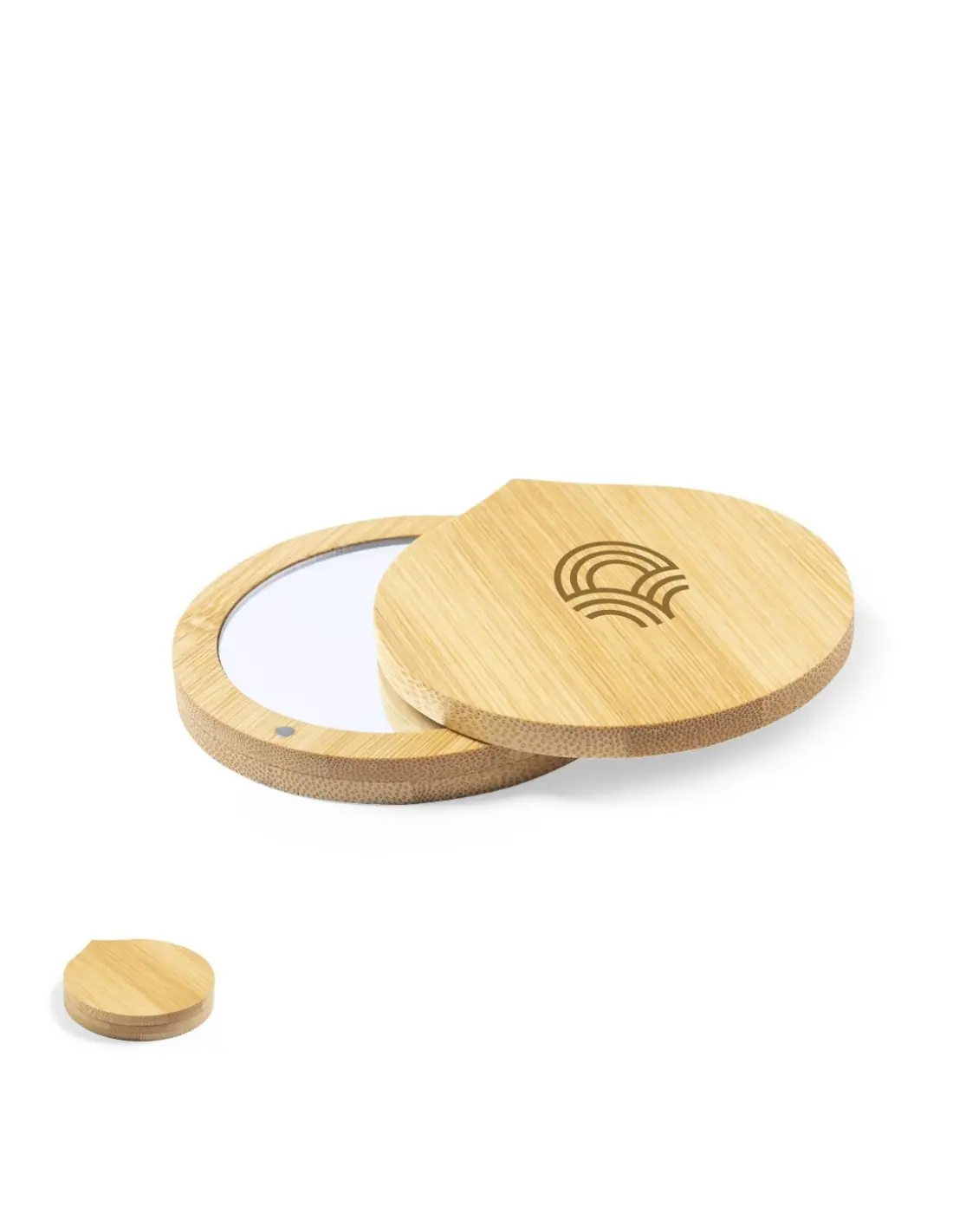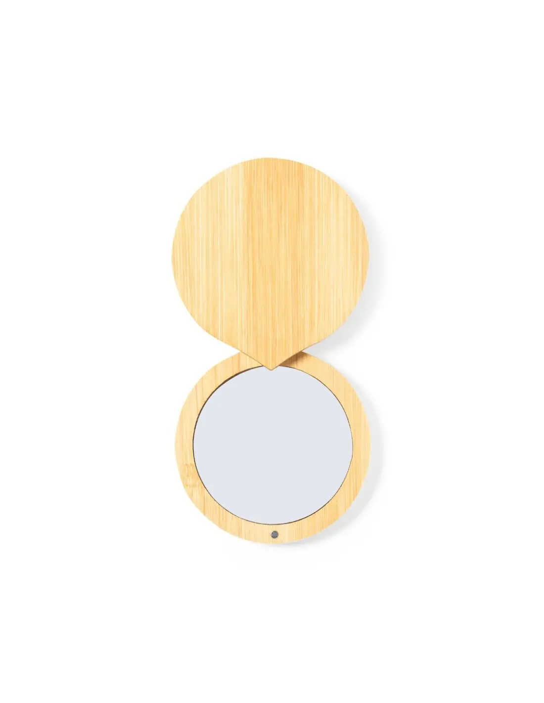Espejo 1X de línea nature, con carcasa fabricada en bambú y cierre magnético. Presentado en caja individual de diseño kraft.