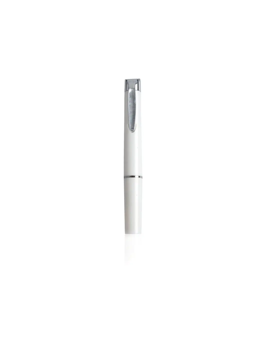 Linterna LED con suave cuerpo en sobrios colores. Con mecanismo de activación en clip metálico.