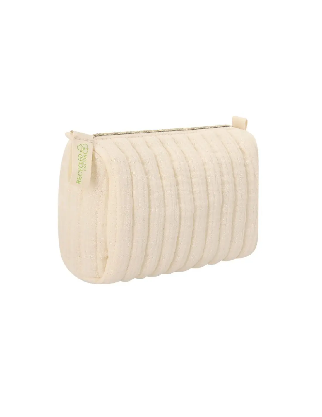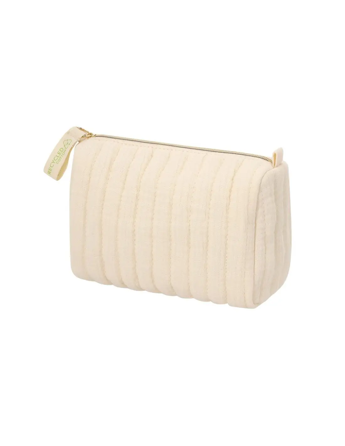 Neceser en Algodón Reciclado de diseño acolchado. Forro interior. Incluye distintivo de algodón reciclado en el tirador.