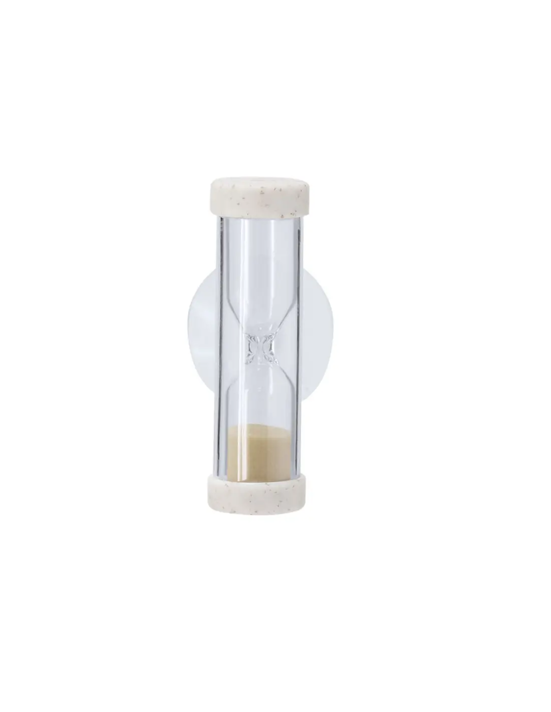 Reloj de arena con duración 2 minutos, fabricado en combinación caña de trigo y cristal. Cuenta con una práctica ventosa que permite fijarlo fácilmente.La Caña de Trigo fomenta la utilización de materias primas naturales, reduciendo así las emisiones contaminantes.
