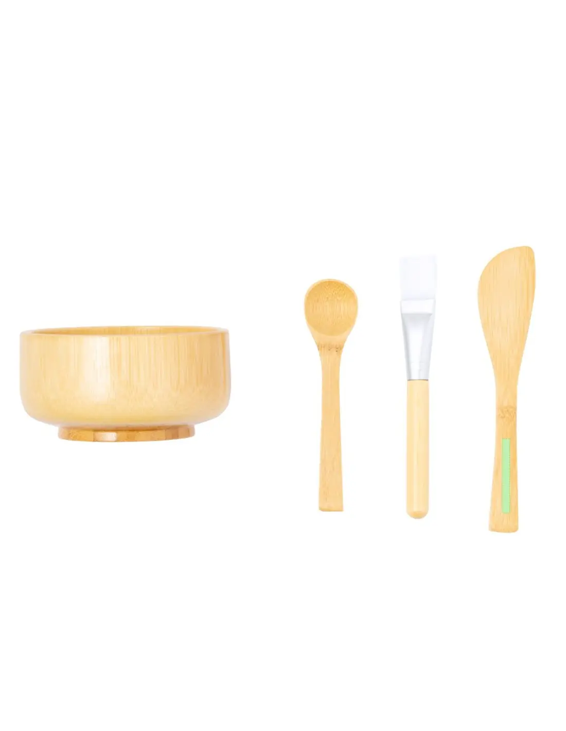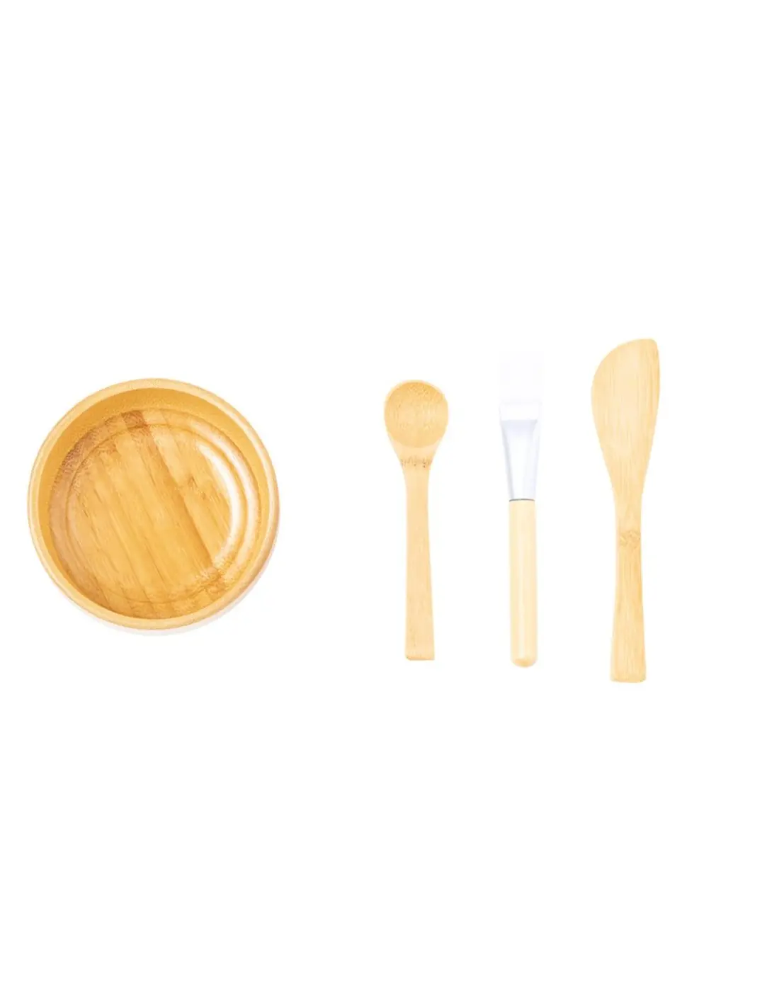 Completo set de mascarilla fabricado en bambú, ideal para una correcta aplicación de la mascarilla facial . Compuesto por 4 piezas: cuenco de elegante diseño, cuchara, paleta y brocha de suaves cerdas. Fácil de limpiar y presentado individualmente en caja de diseño kraft.