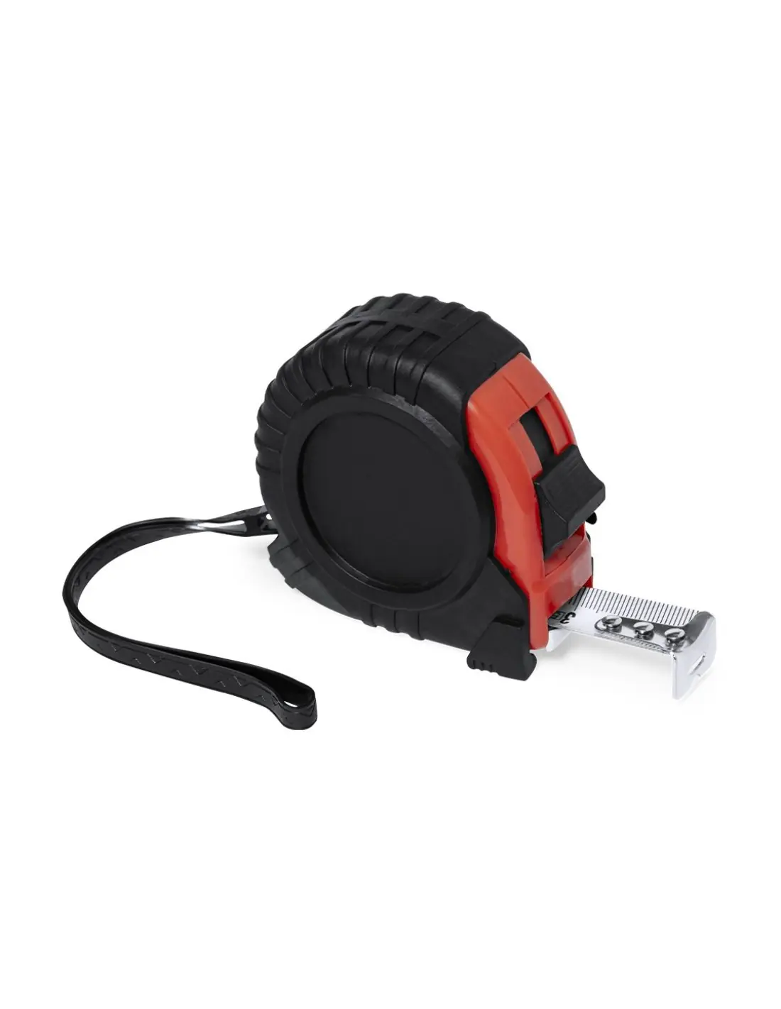 Flexómetro de 5 metros con cuchilla metálica y mecanismo de bloqueo. Con cuerpo de suave acabado en variados colores, recubierto con funda protectora de resistente goma, clip metálico para cinturón y cinta de transporte. Con troquelado especial para marcaje en doming/gota de resina y presentado en caja individual.