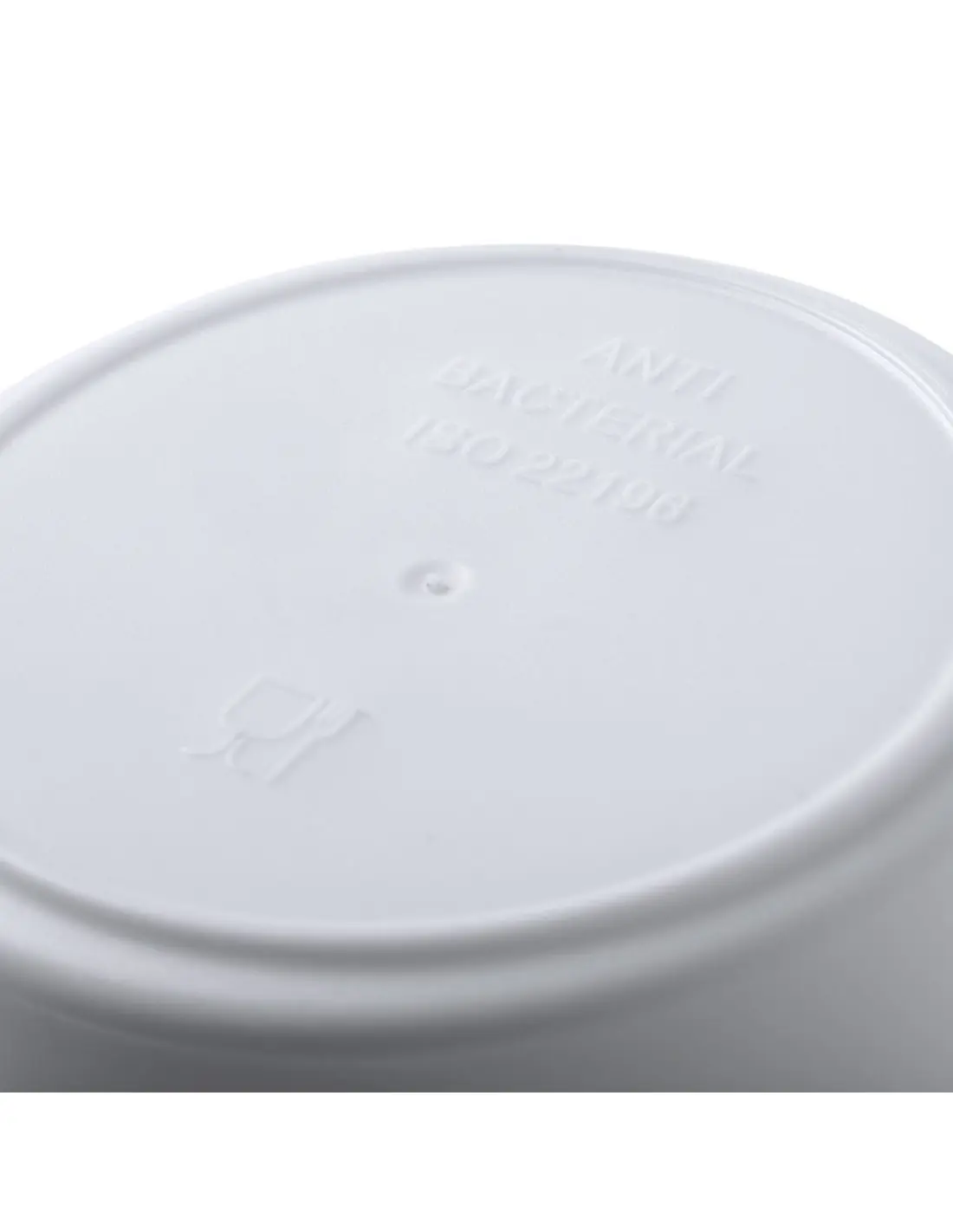 Taza antibacteriana en resistente material PP de acabado sólido y libre de BPA. 350 ml de capacidad, presentada en bolsa individual. Los productos con tratamientos antibacterianos son capaces de reducir drásticamente las cargas bacterianas presentes en las superficies de los materiales, gracias a la incorporación de agentes microbianos permanentes estáticos, con alta efectividad para inhibir y prevenir la contaminación bacteriana. Artículo de acuerdo al estándar ISO 22196, que determina la actividad antibacteriana en materiales plásticos y superficies no porosas, lo que permite conocer la efectividad de inhibición microbiana que tienen los aditivos sobre los objetos tratados mediante una evaluación cuantitativa.