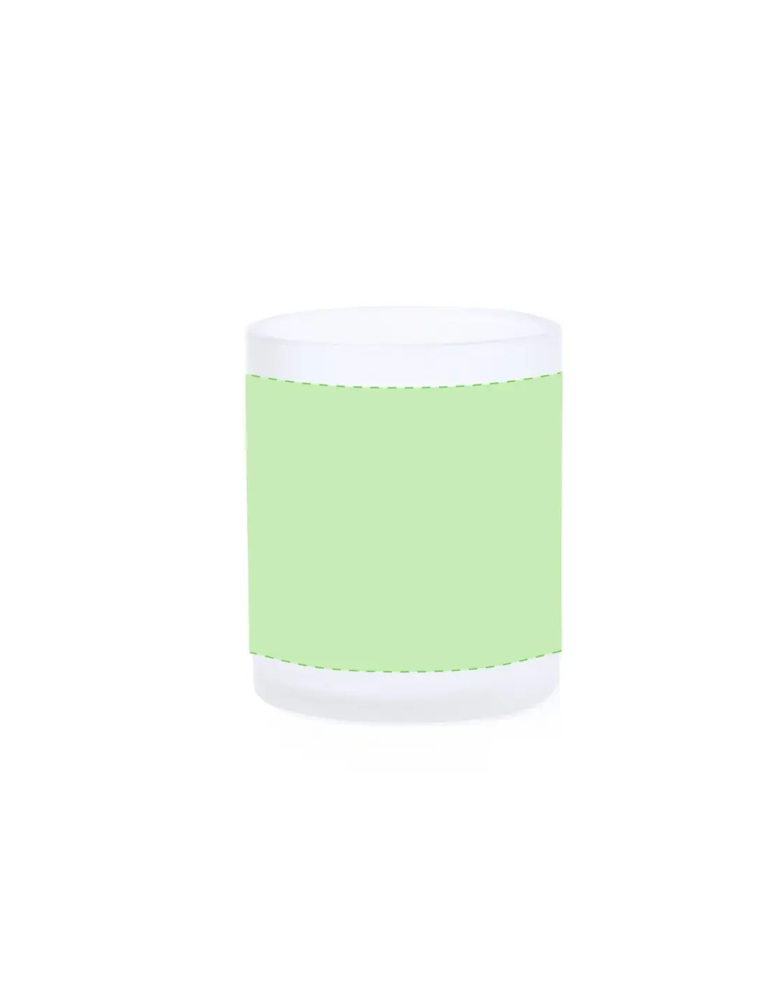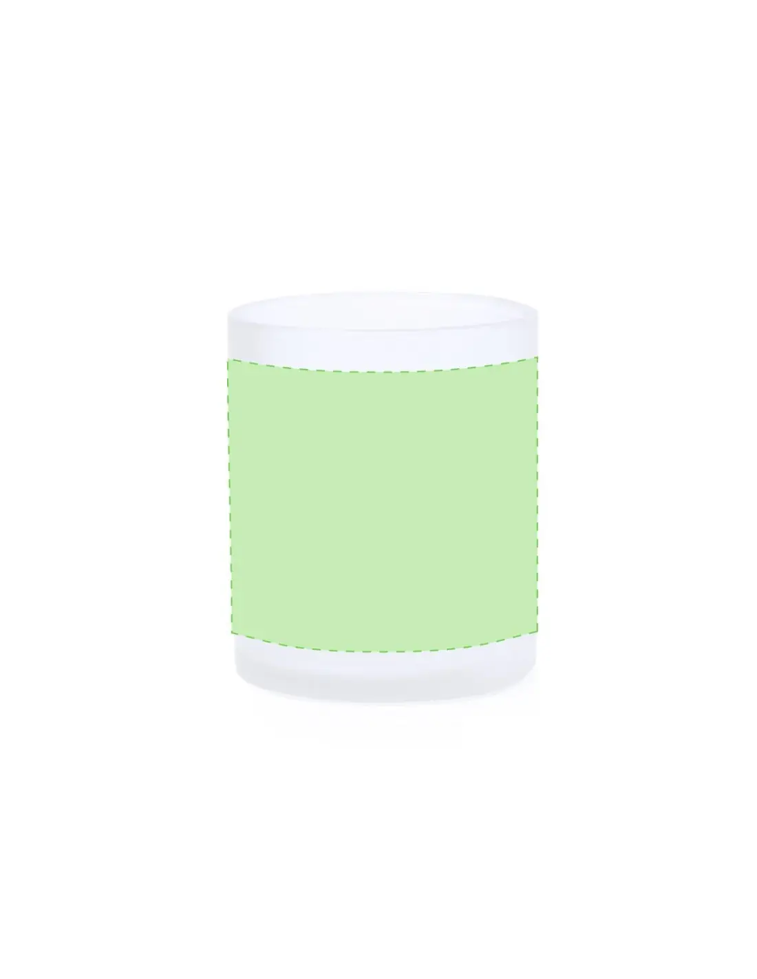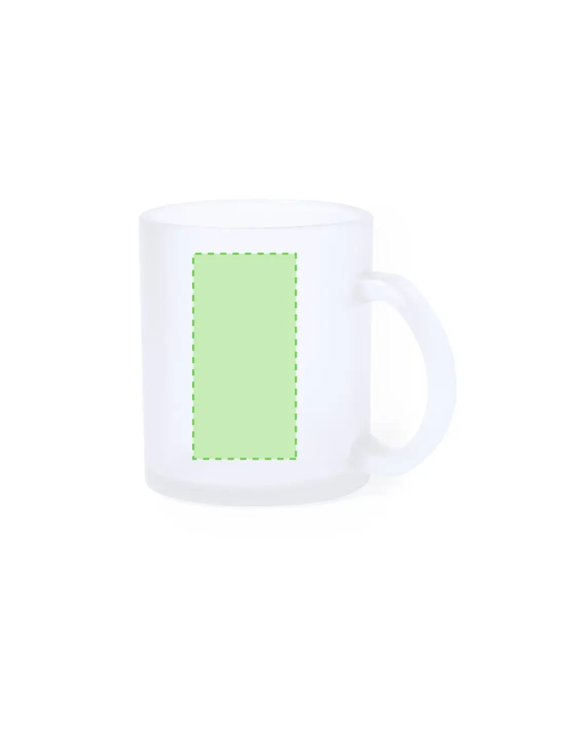 Taza de cristal de 350ml de capacidad, de acabado translúcido y especialmente diseñada para marcaje en sublimación. Presentada en caja individual de diseño kraft.