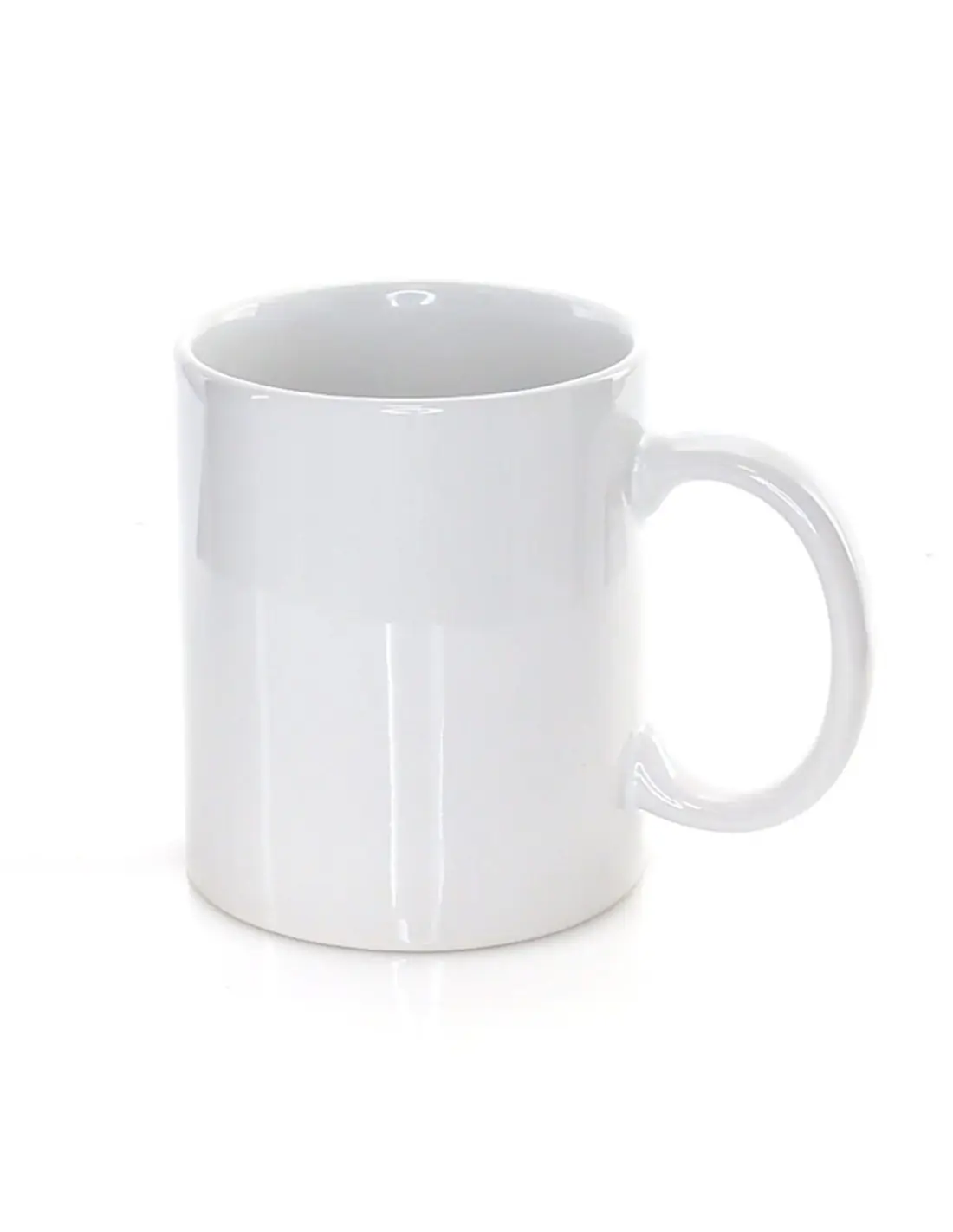 Taza de cerámica de 350ml. Diseño en color blanco especialmente diseñada para la sublimación, pudiendo transferir todo tipo de diseños a todo color. Cada taza viene presentada en caja individual kraft.