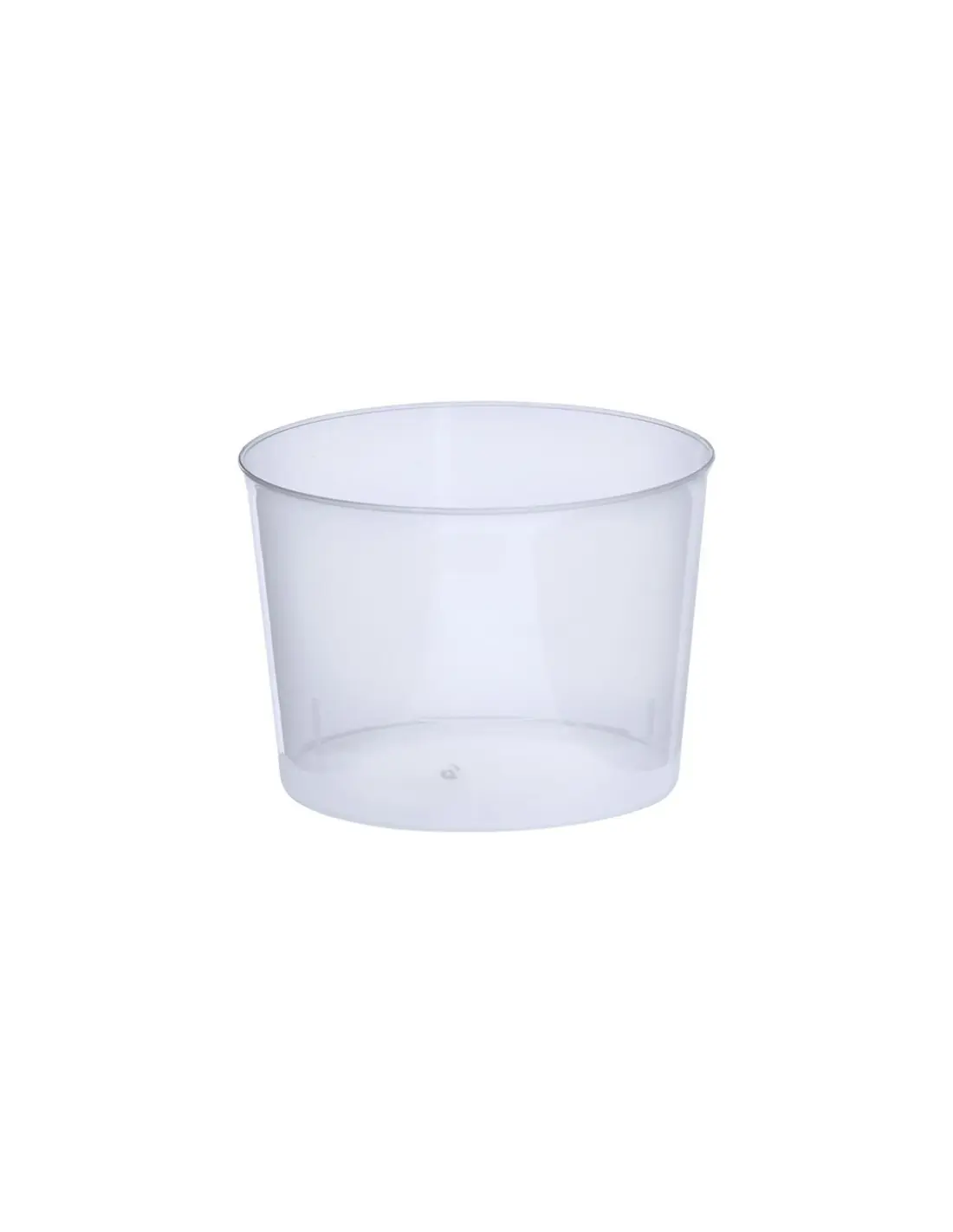 Vaso de 210 ml de capacidad en resistente y flexible material PP. Reutilizable y en acabado translúcido.